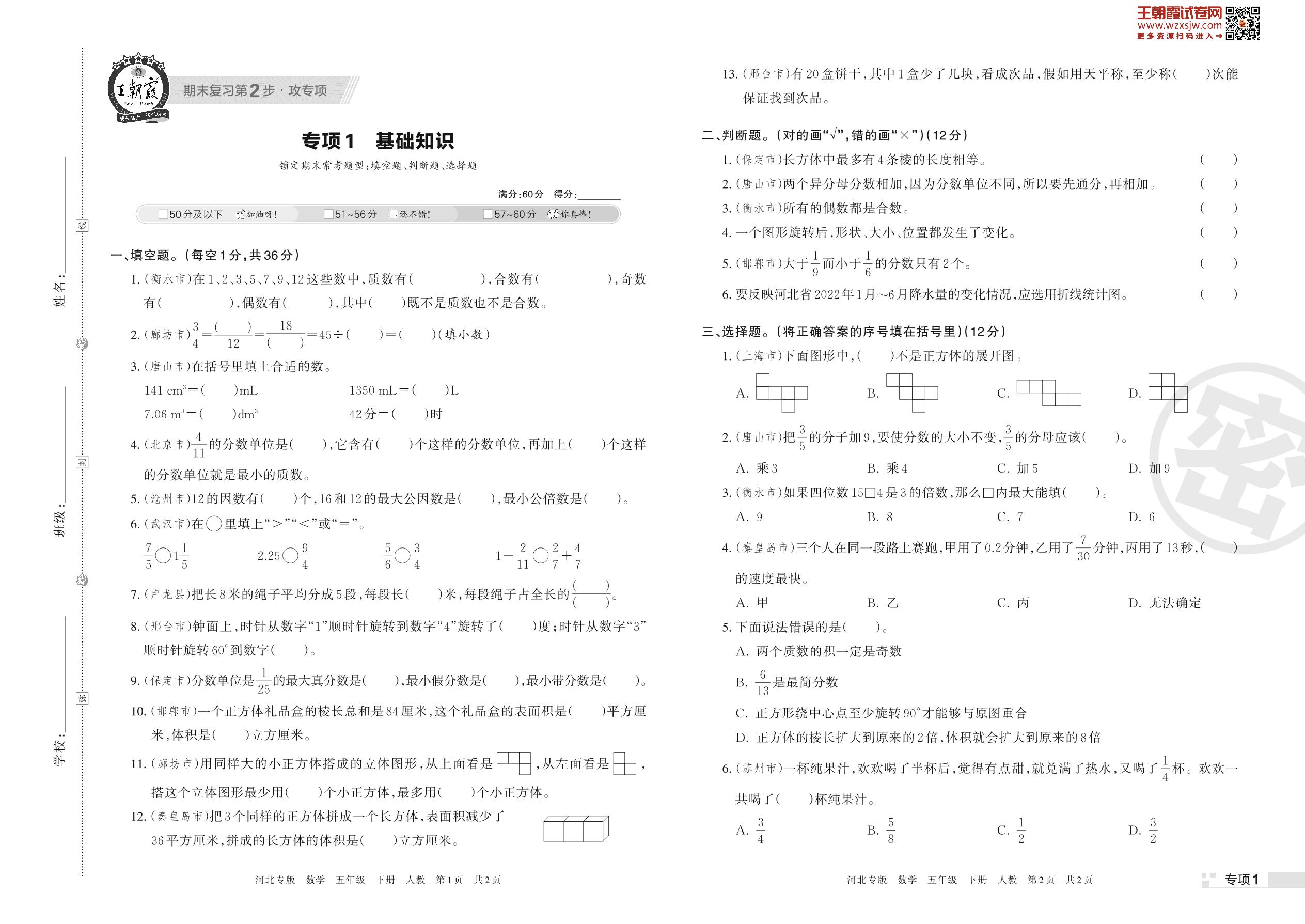 王朝霞期末专项卷——基础知识五年级下册数学(人教版)_R230420151220181【1】