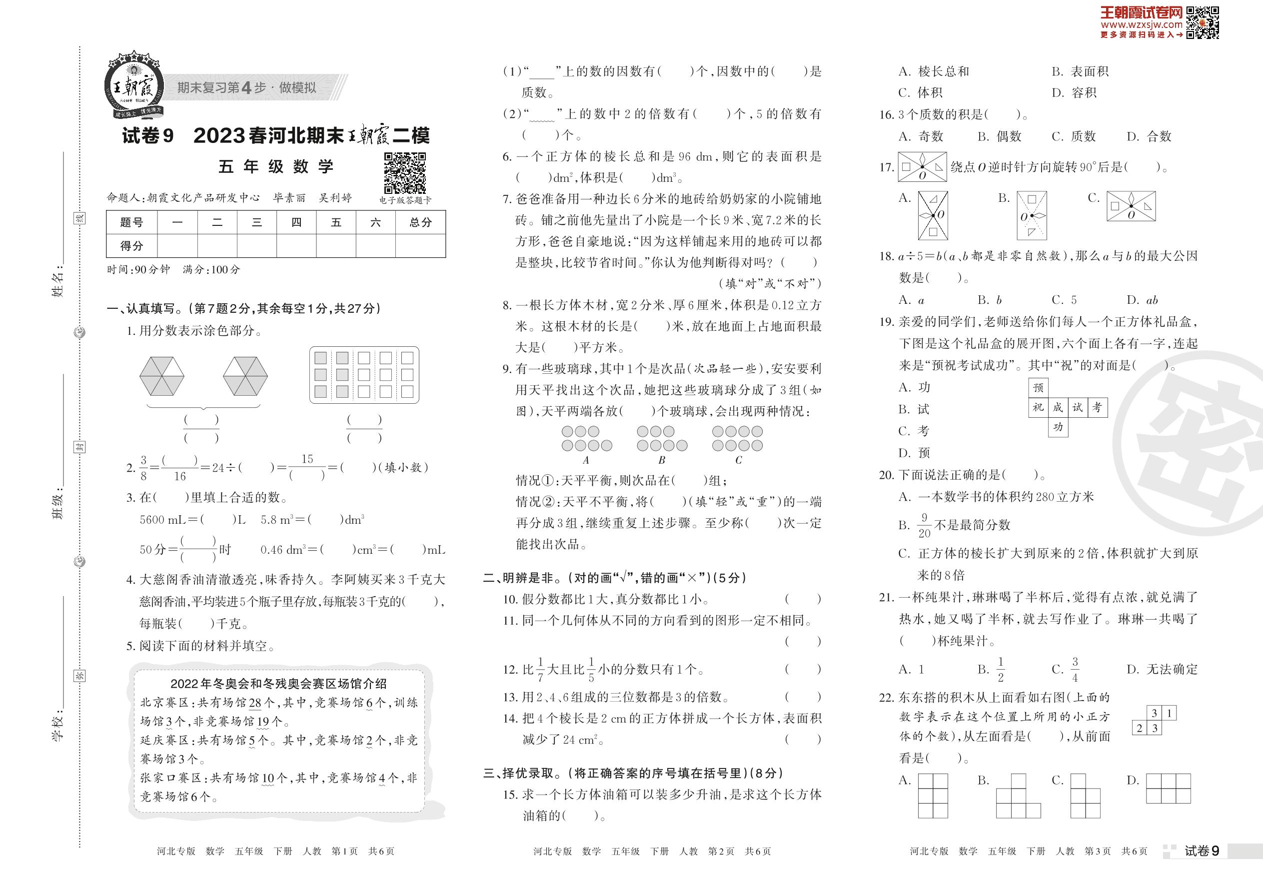 王朝霞期末模拟卷五年级下册数学(人教版)【9】