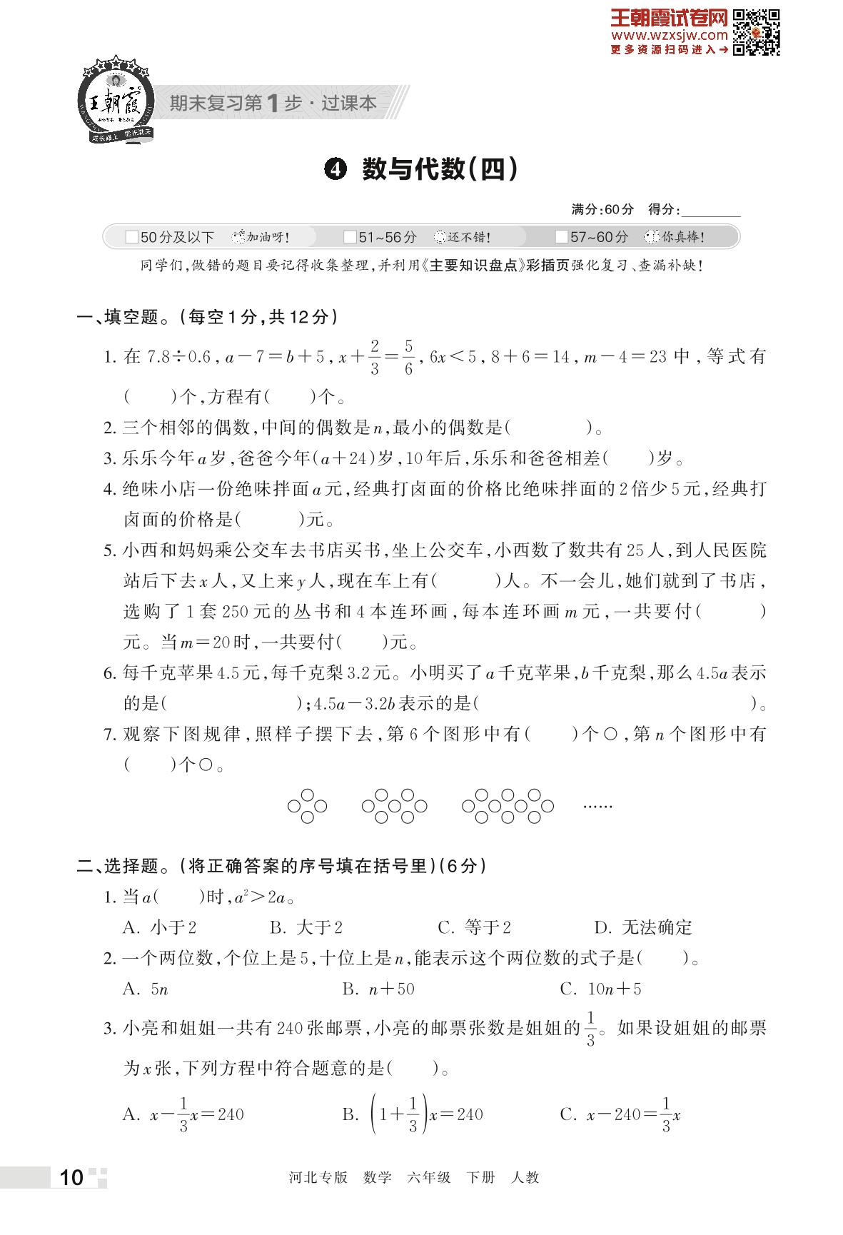 王朝霞期末过课本——4 数与代数(四)六年级下册数学(人教版)