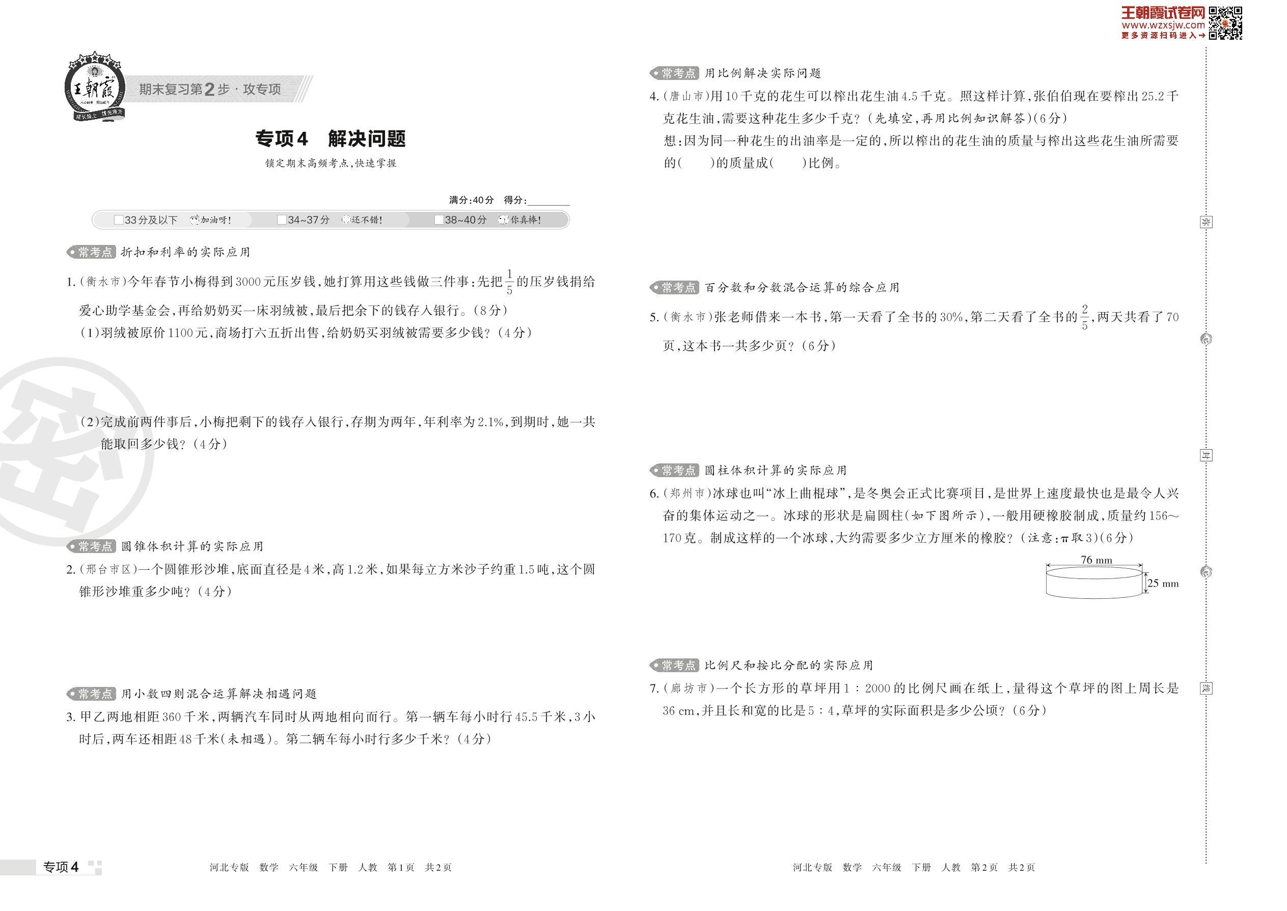 王朝霞期末专项卷——解决问题六年级下册数学(人教版)_R230420151823062【4】