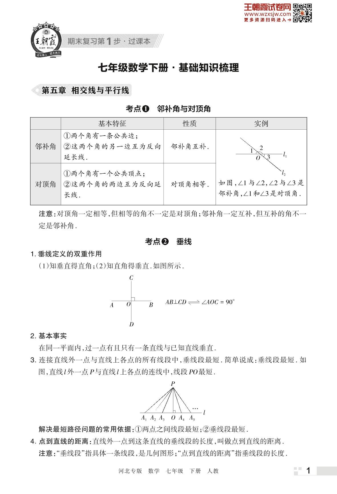 王朝霞期末知识梳理——第五章 相交线与平行线七年级下册数学(人教版)