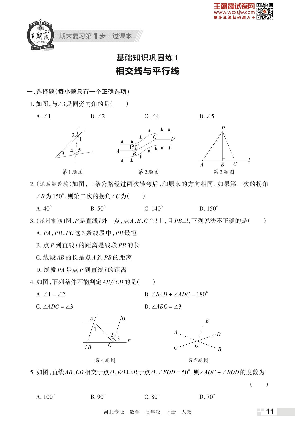 王朝霞期末过课本——基础知识巩固练1 相交线与平行线七年级下册数学(人教版)_R230420152405094