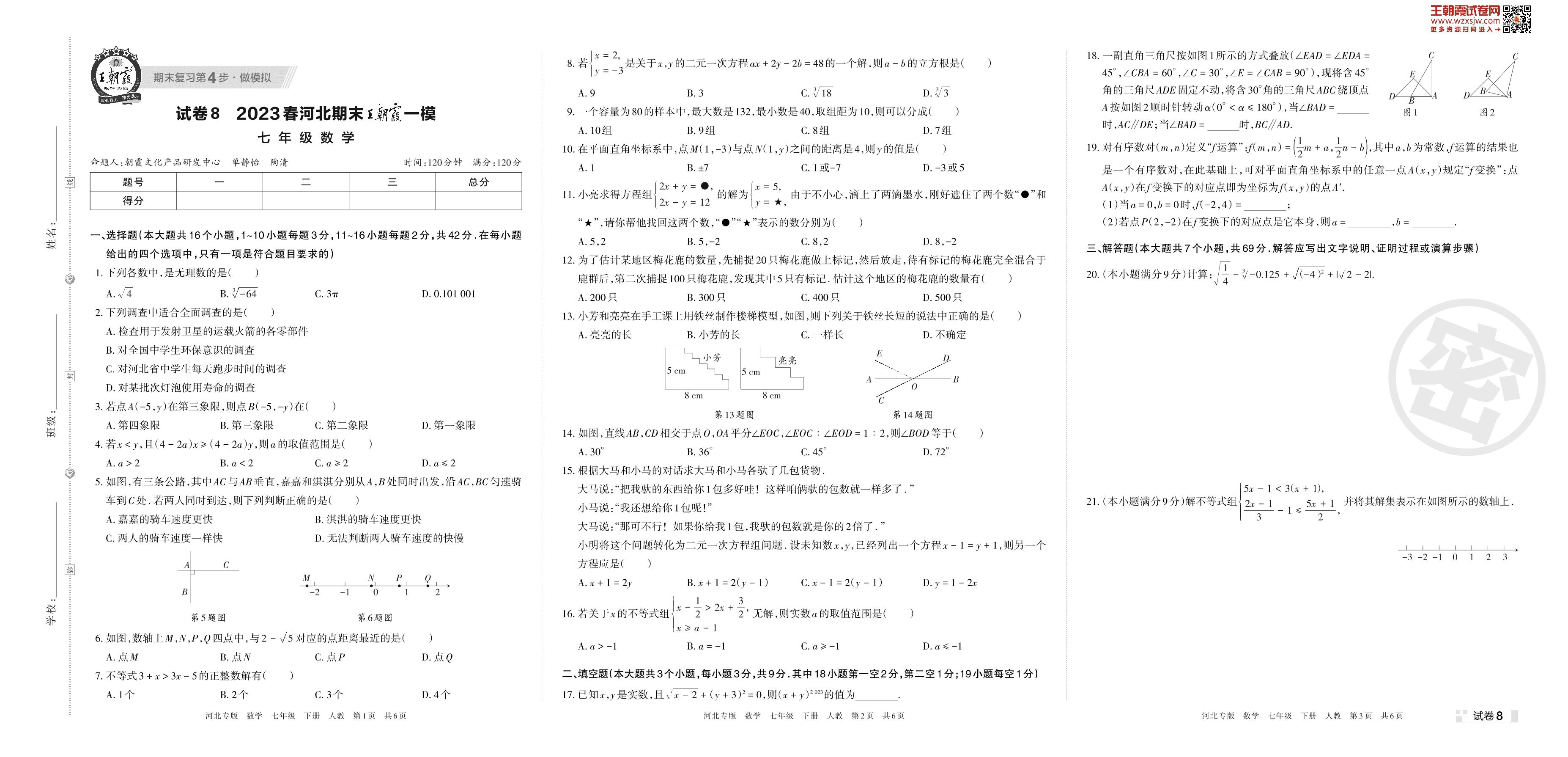 王朝霞期末模拟卷七年级下册数学(人教版)_R230420152407330【8】