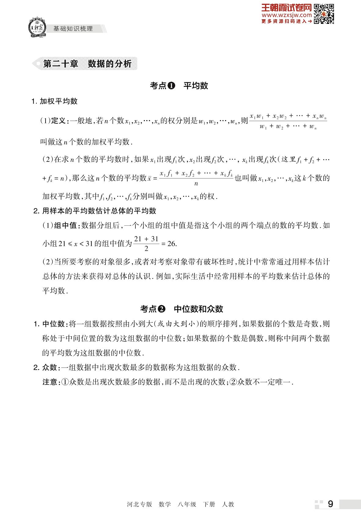 王朝霞期末知识梳理——第二十章 数据的分析八年级下册数学(人教版)