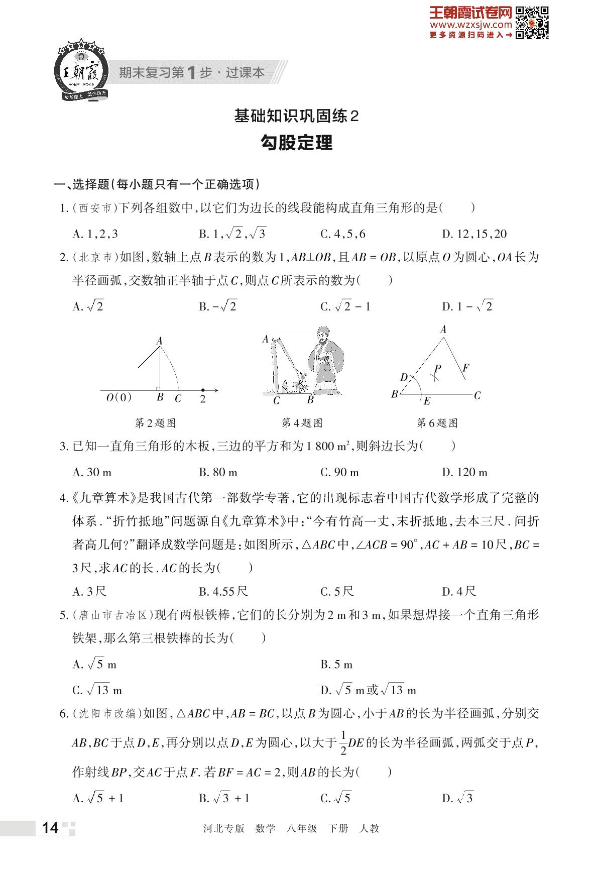 王朝霞期末过课本——基础知识巩固练2 勾股定理八年级下册数学(人教版)_R230420152919404