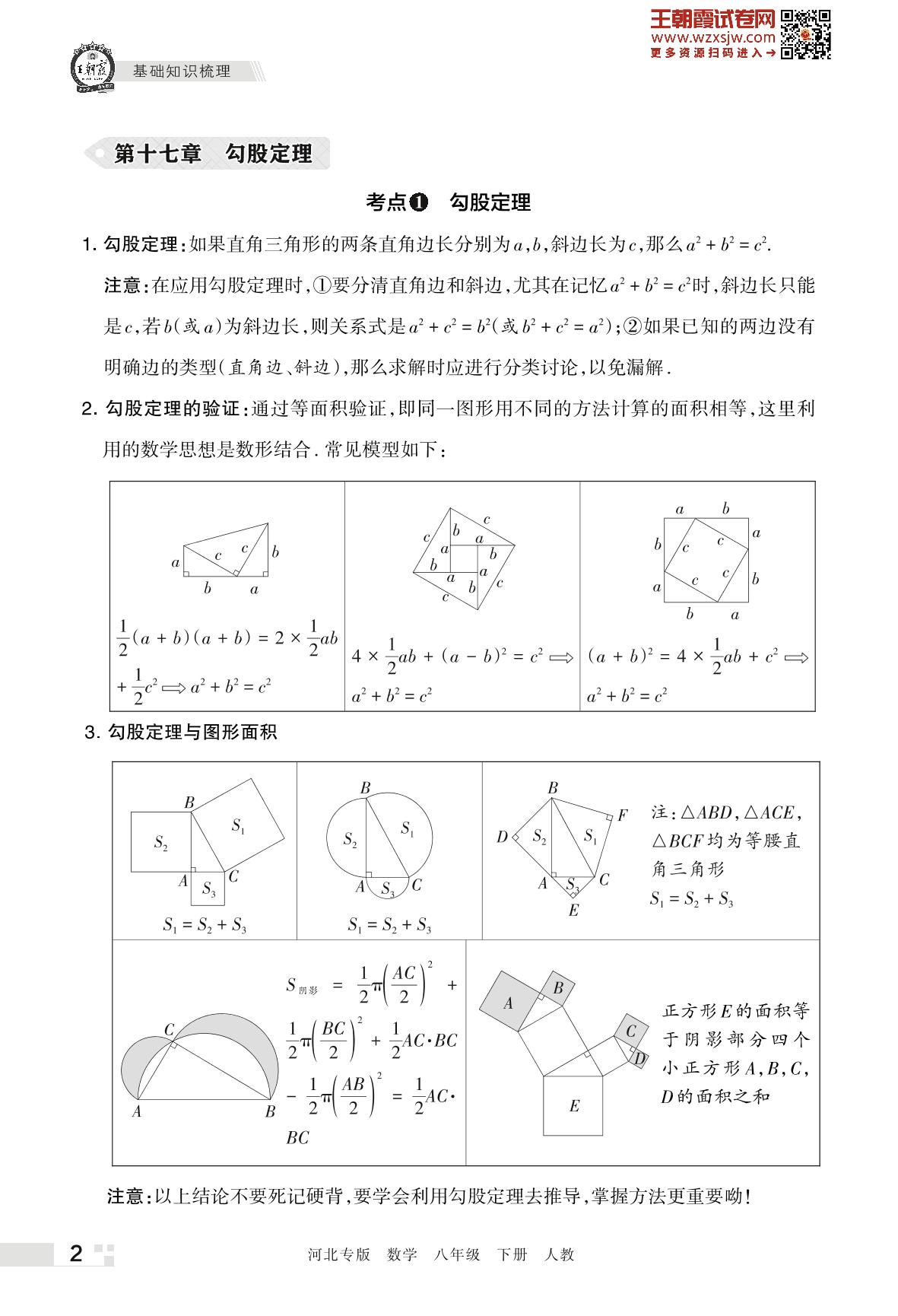 王朝霞期末知识梳理——第十七章 勾股定理八年级下册数学(人教版)