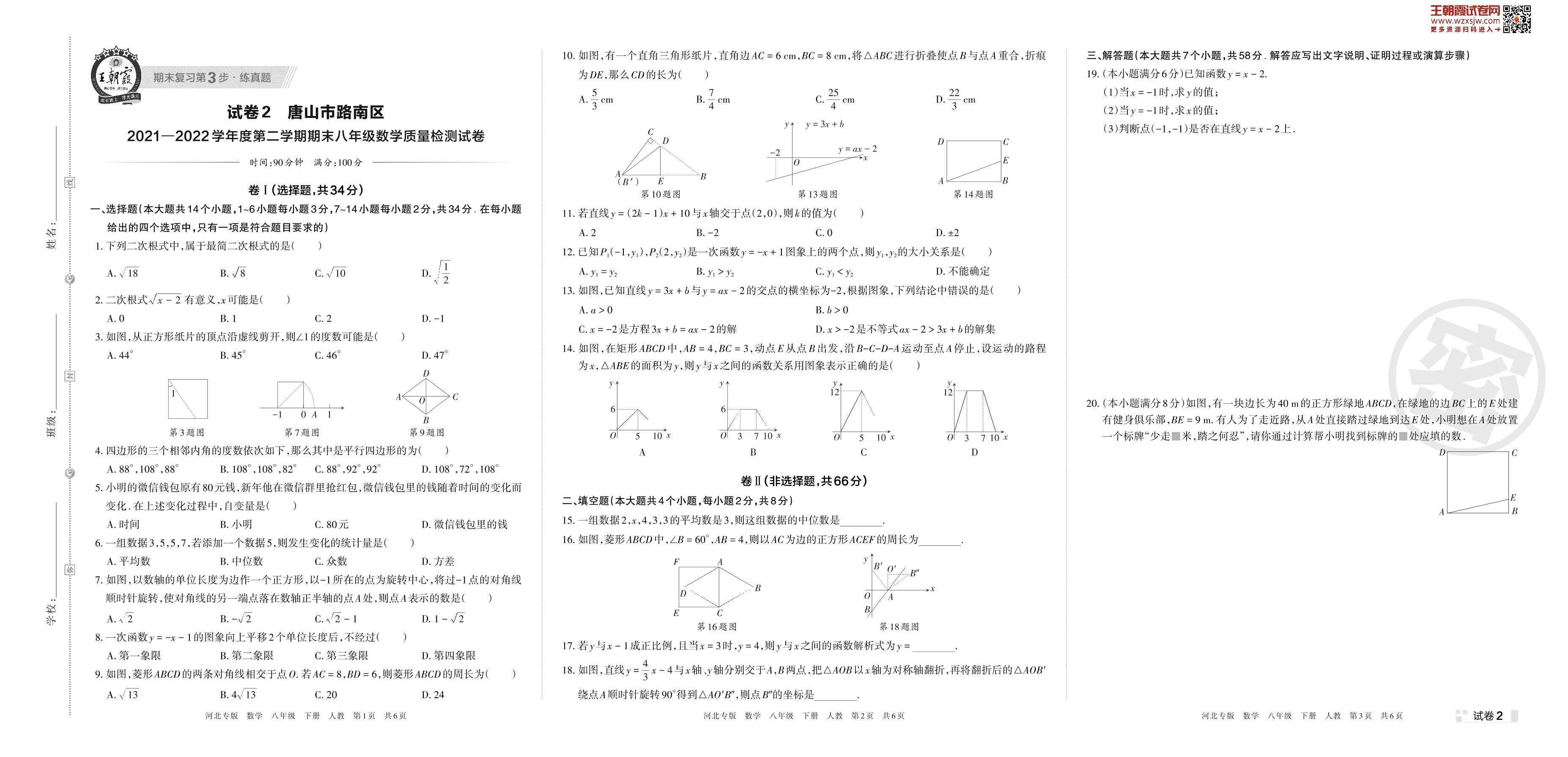 唐山市路南区2021—2022学年度第二学期期末八年级数学质量检测试卷(人教版)【2】