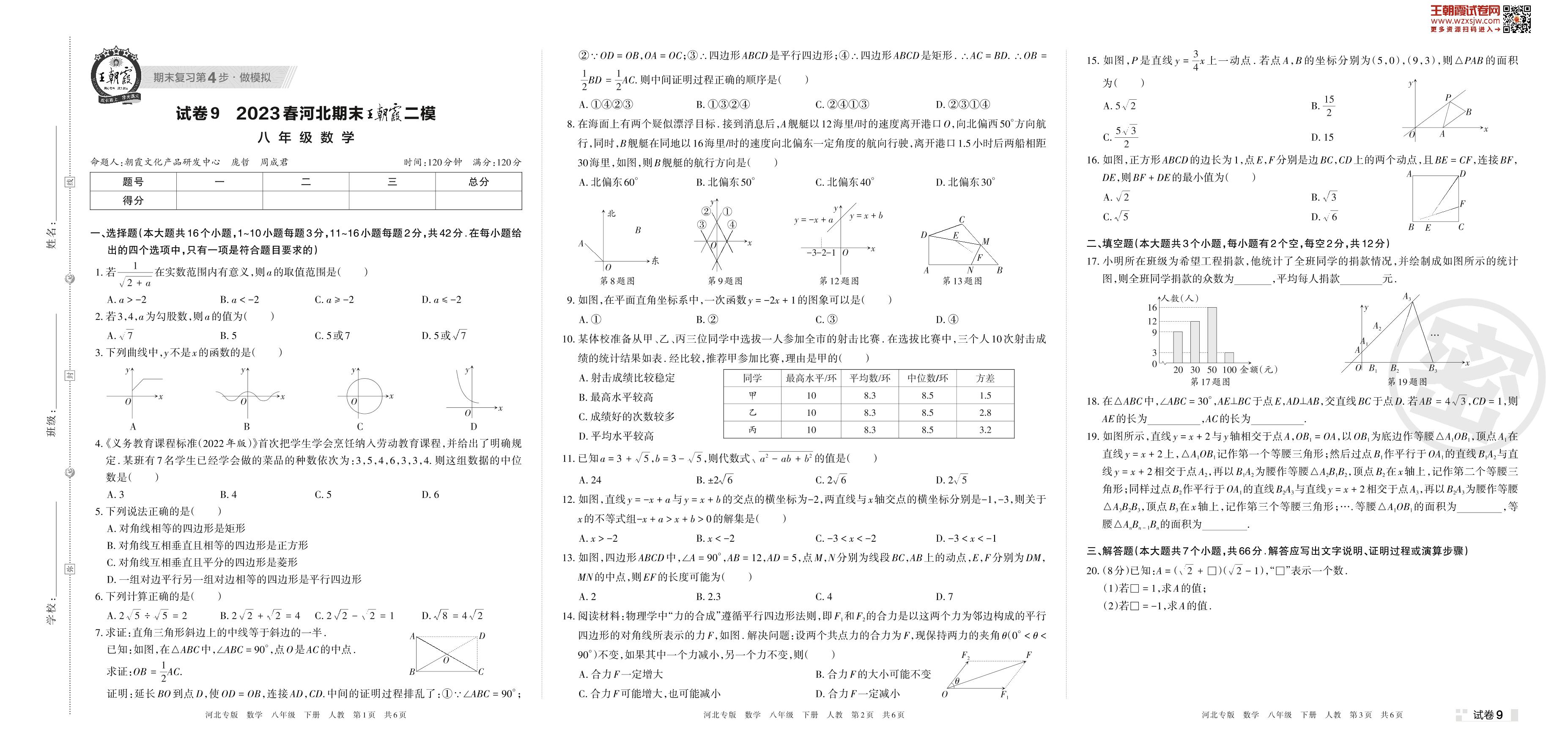 王朝霞期末模拟卷八年级下册数学(人教版)【9】