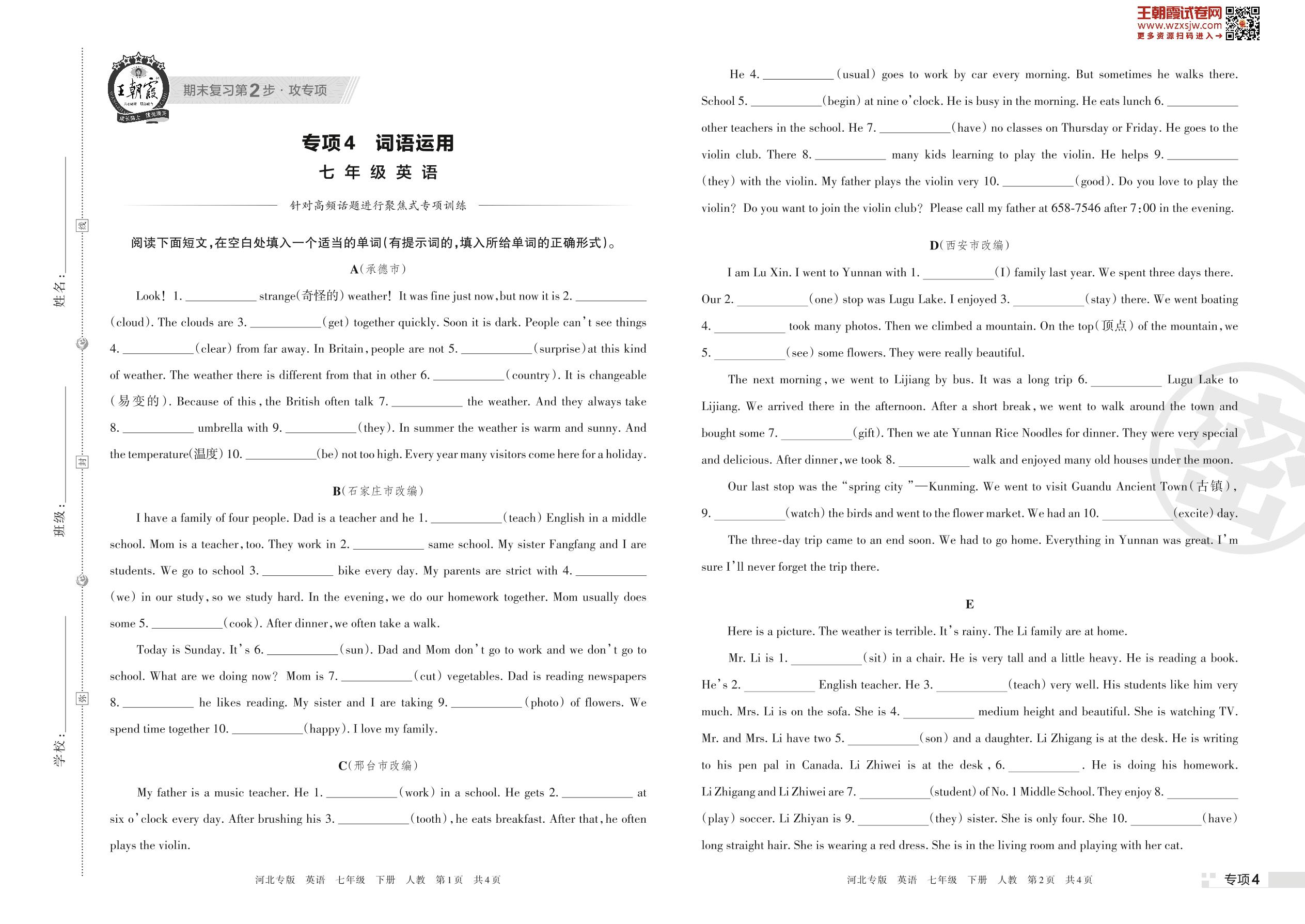 王朝霞期末专项卷——词语运用七年级下册英语(人教版)_R230420155555852【4】