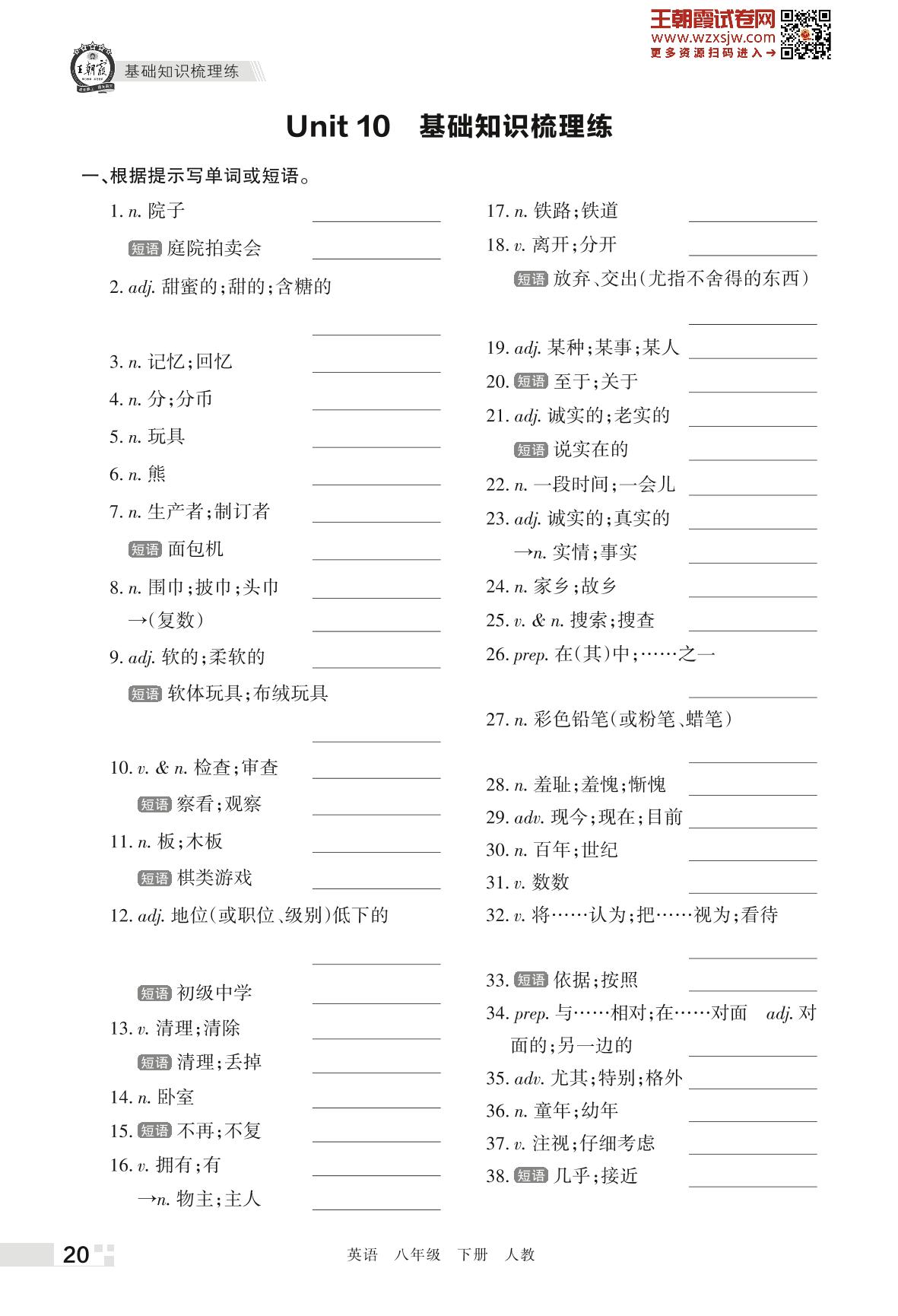 王朝霞期末过课本——Unit 10 基础知识梳理练八年级下册英语(人教版)_R230420160313088