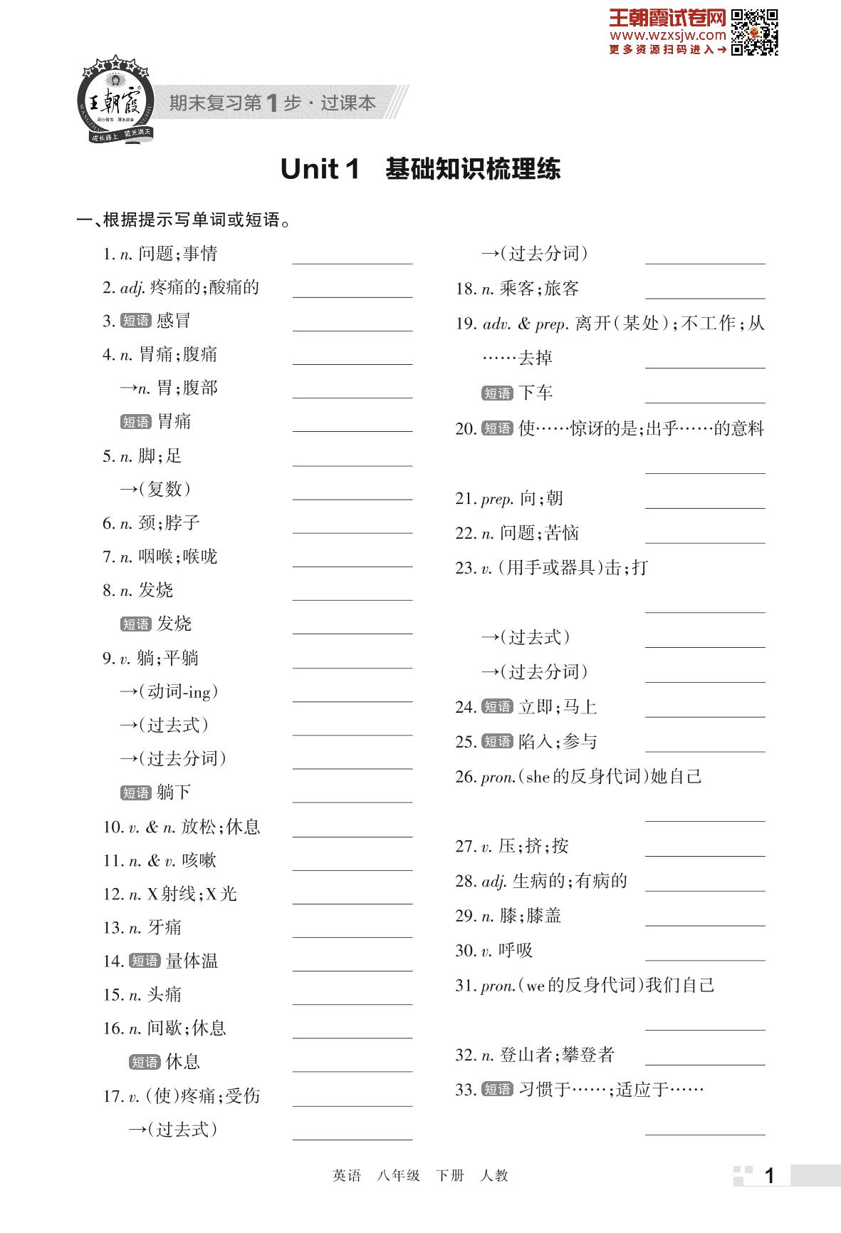 王朝霞期末过课本——Unit 1 基础知识梳理练八年级下册英语(人教版)_R230420160314992