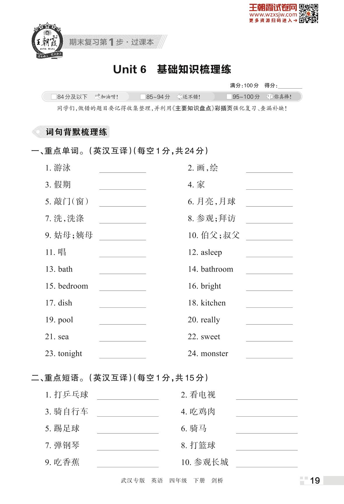 王朝霞期末过课本——Unit 6 基础知识梳理练四年级下册英语(剑桥版)_R230420160830073
