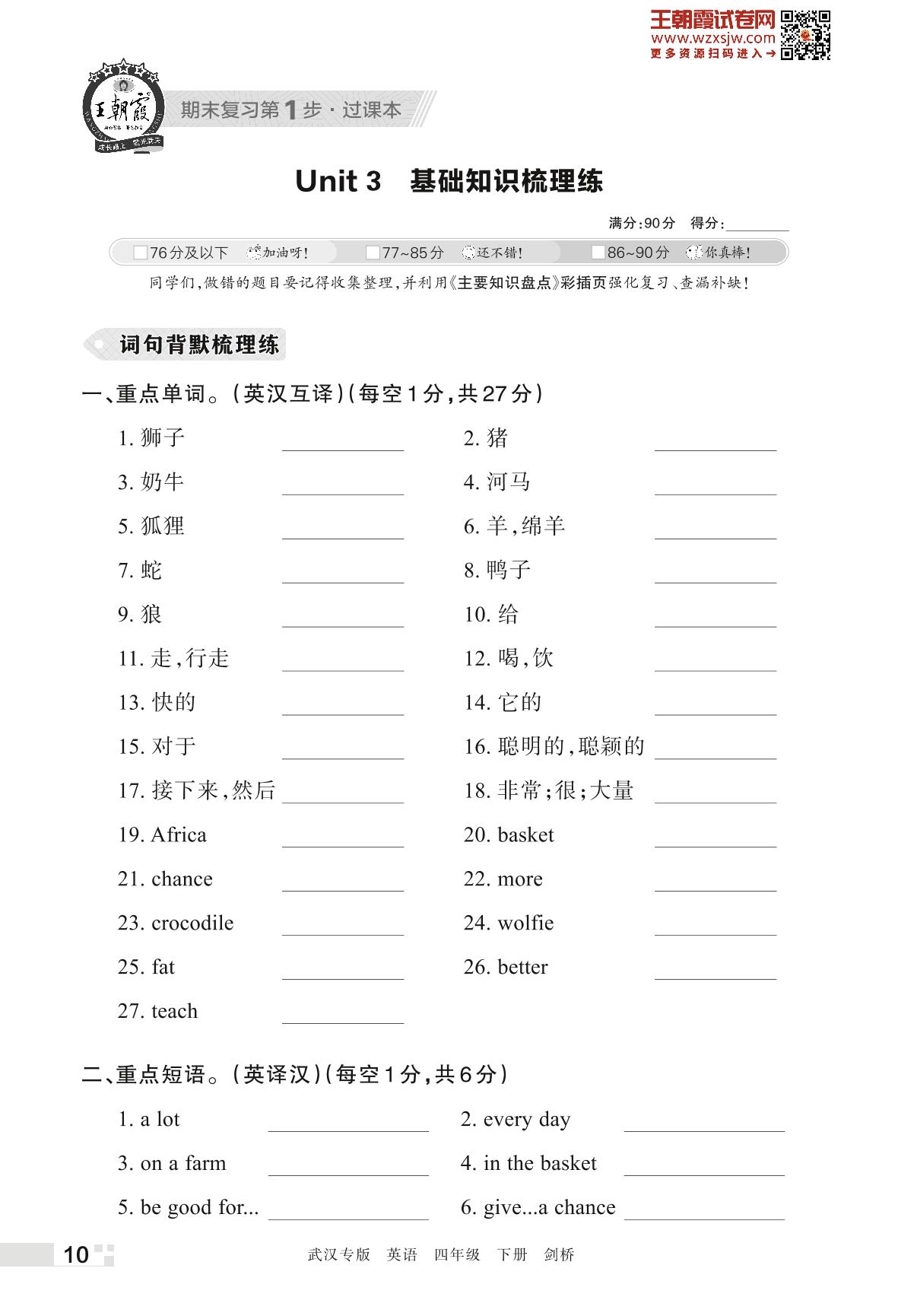 王朝霞期末过课本——Unit 3 基础知识梳理练四年级下册英语(剑桥版)_R230420160830553