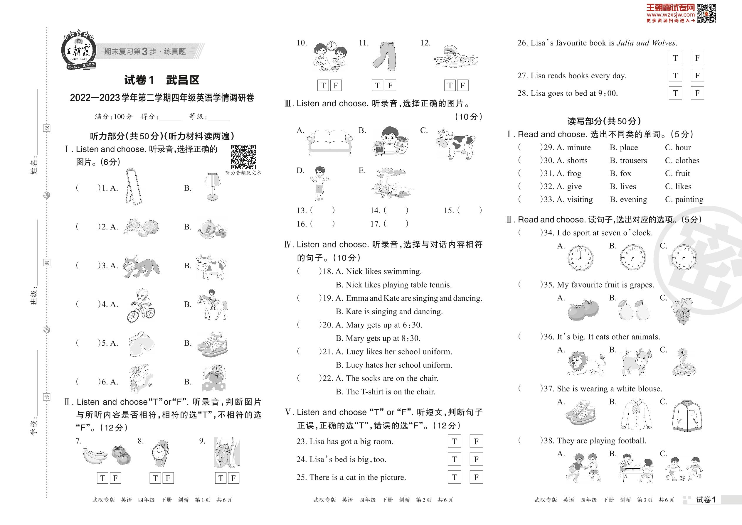 武昌区2022—2023学年第二学期四年级英语学情调研卷(剑桥版)【1】