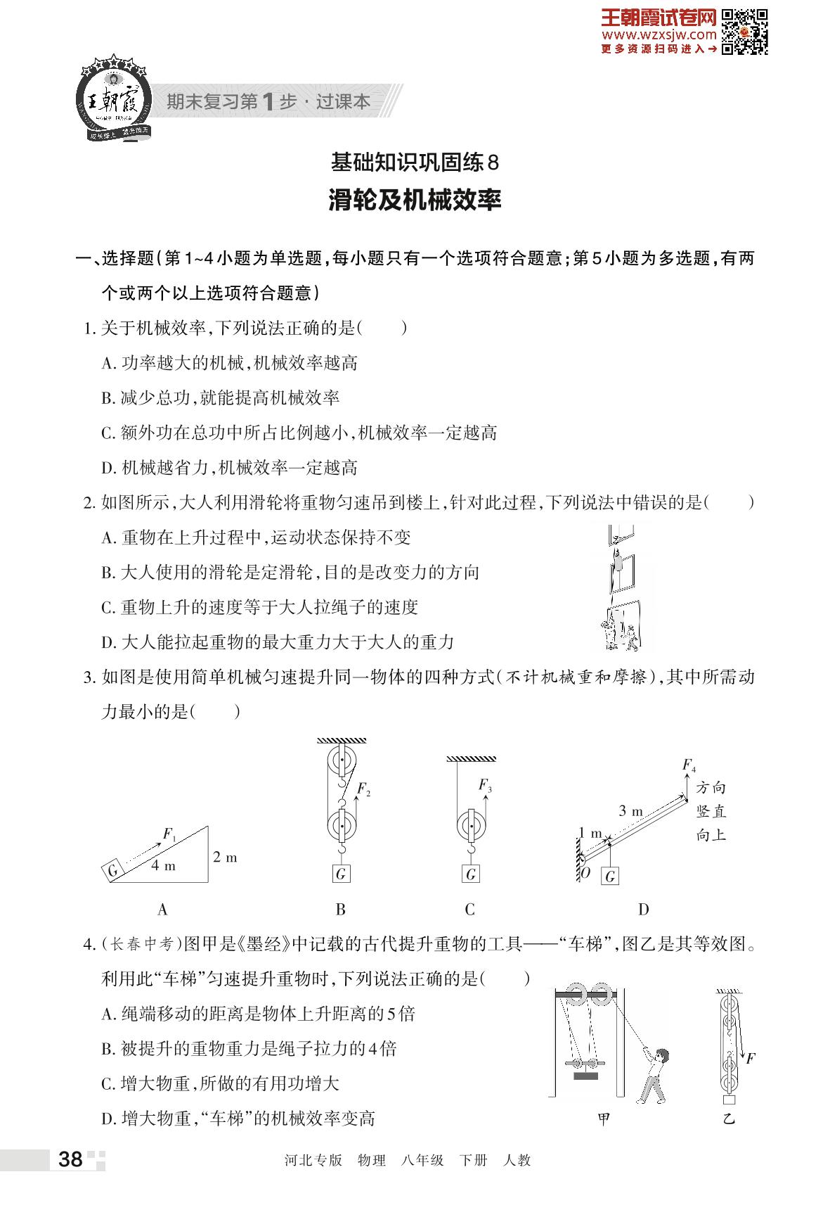 王朝霞期末过课本——基础知识巩固练8 滑轮及机械效率八年级下册物理(人教版)_R230420161024427