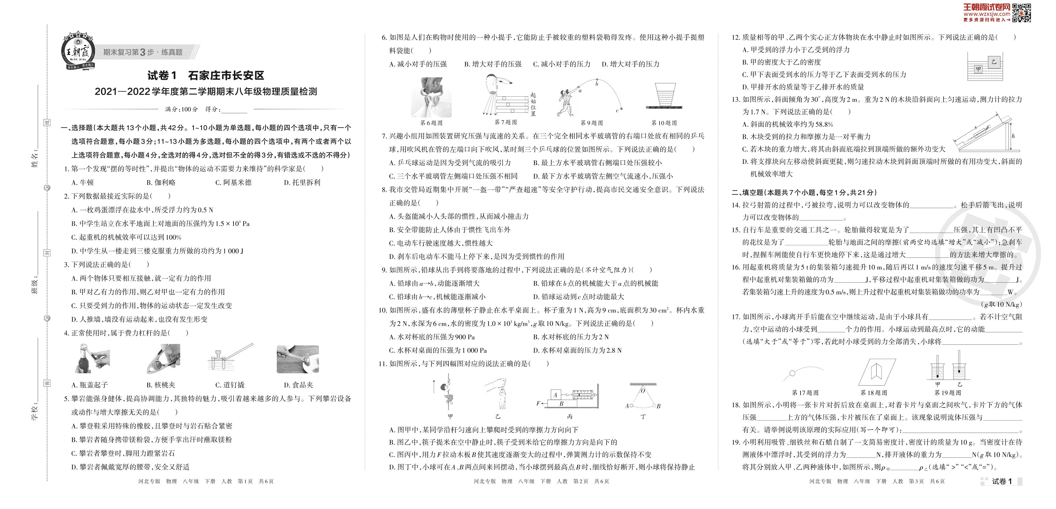 八年级物理人教版下册期末卷