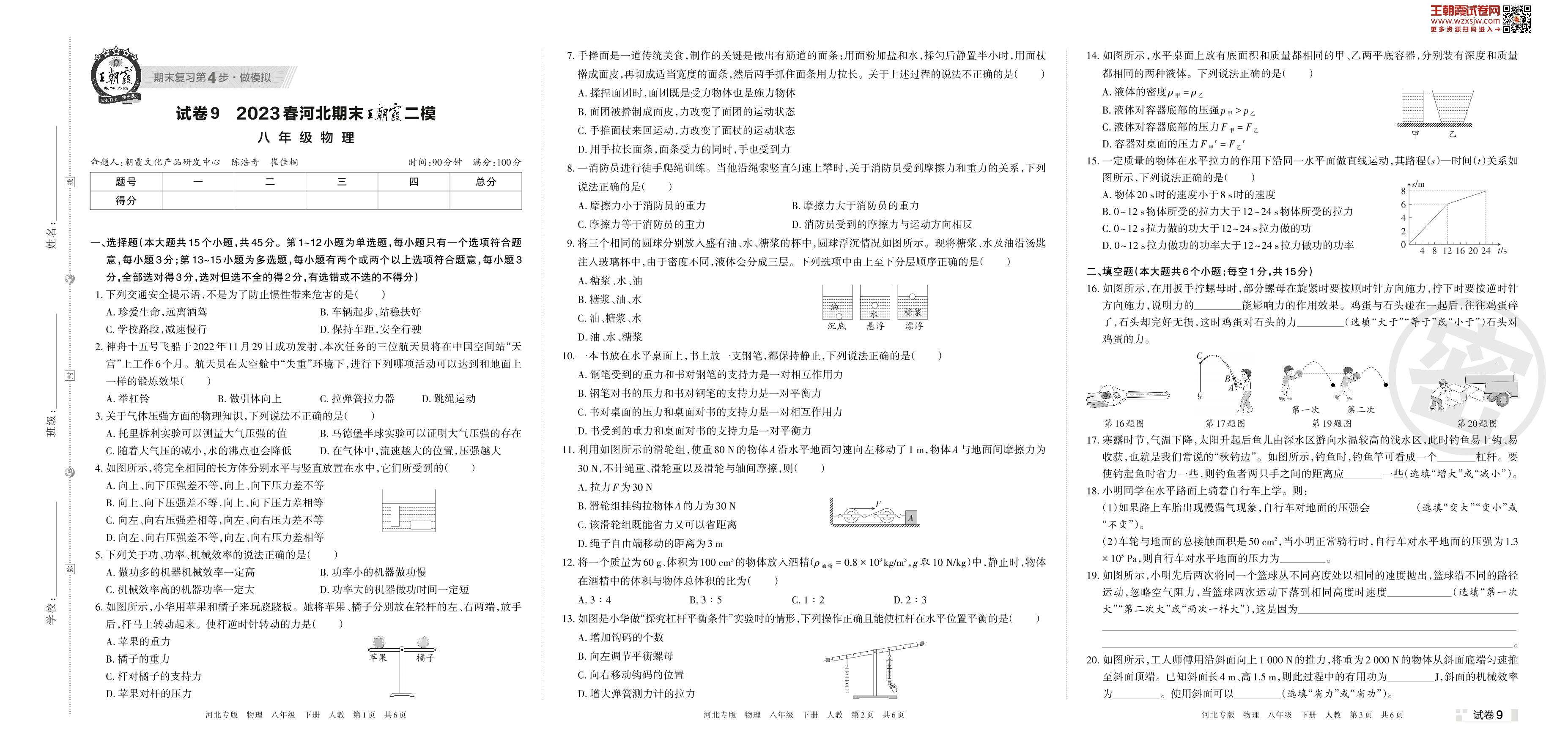 王朝霞期末模拟卷八年级下册物理(人教版)【9】
