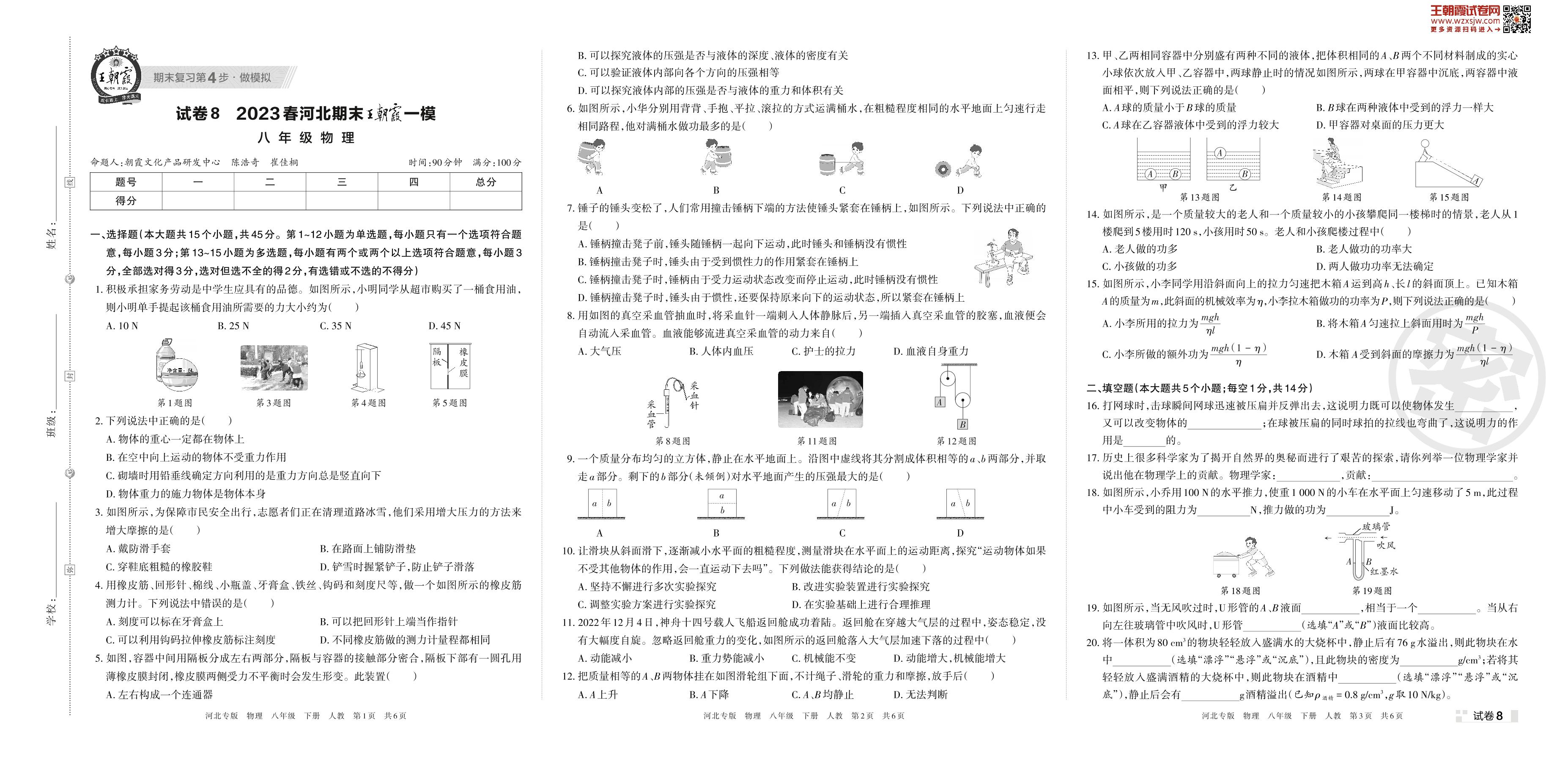 王朝霞期末模拟卷八年级下册物理(人教版)_R230420161026000【8】