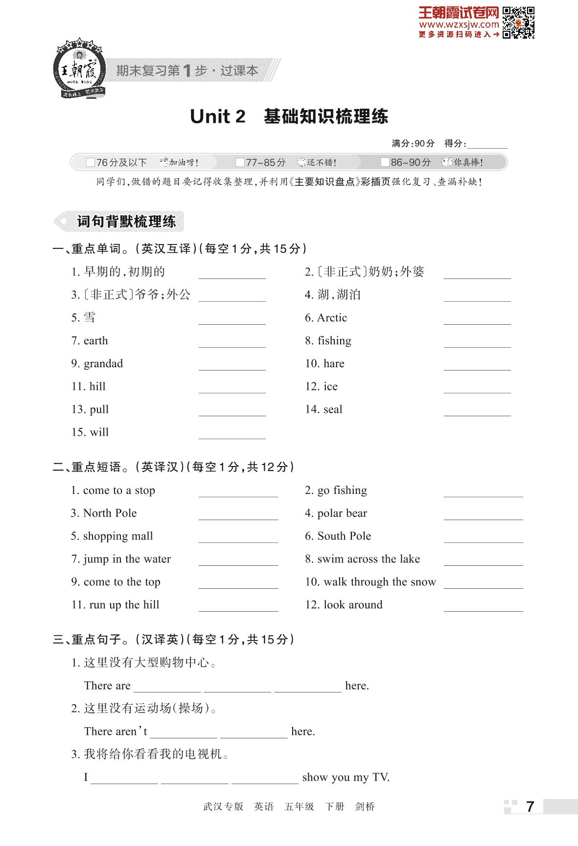 王朝霞期末过课本——Unit 2 基础知识梳理练五年级下册英语(剑桥版)_R230420161417689