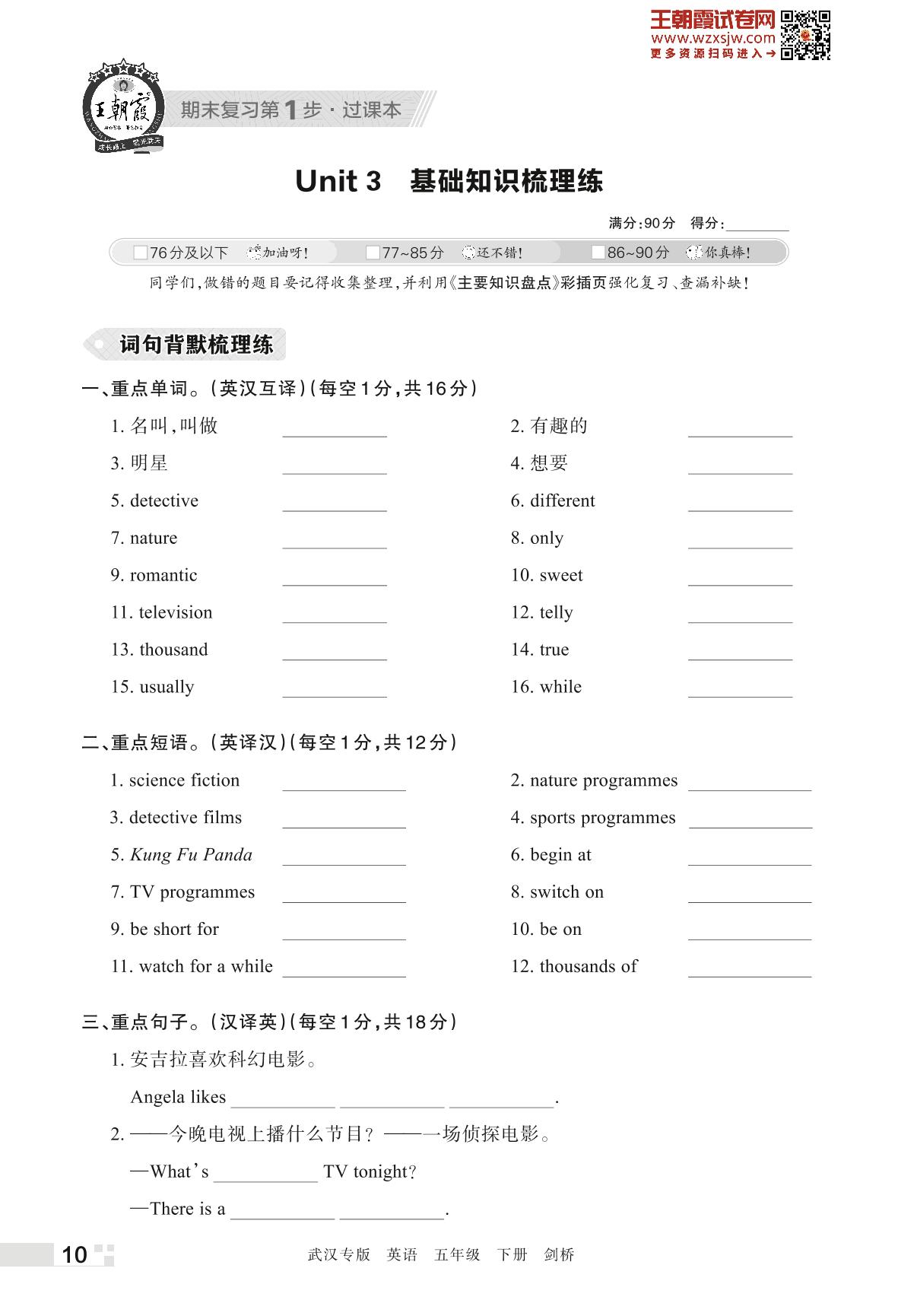 王朝霞期末过课本——Unit 3 基础知识梳理练五年级下册英语(剑桥版)_R230420161417762