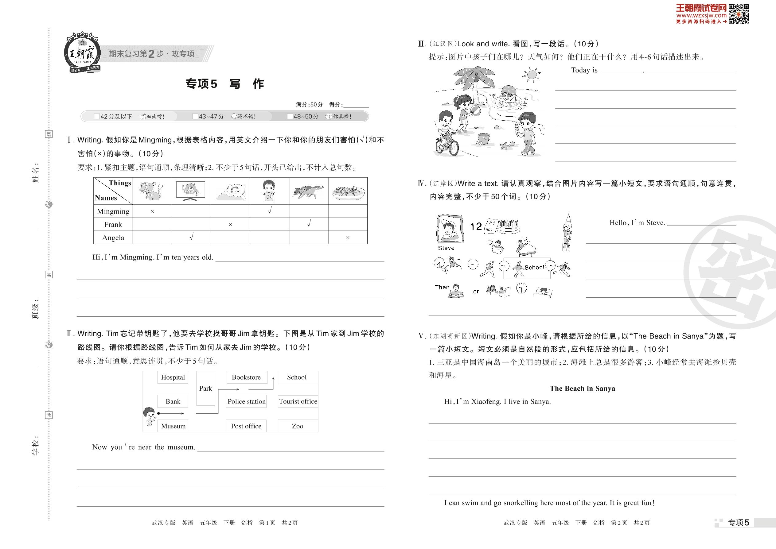 王朝霞期末专项卷——写作五年级下册英语(剑桥版)【5】