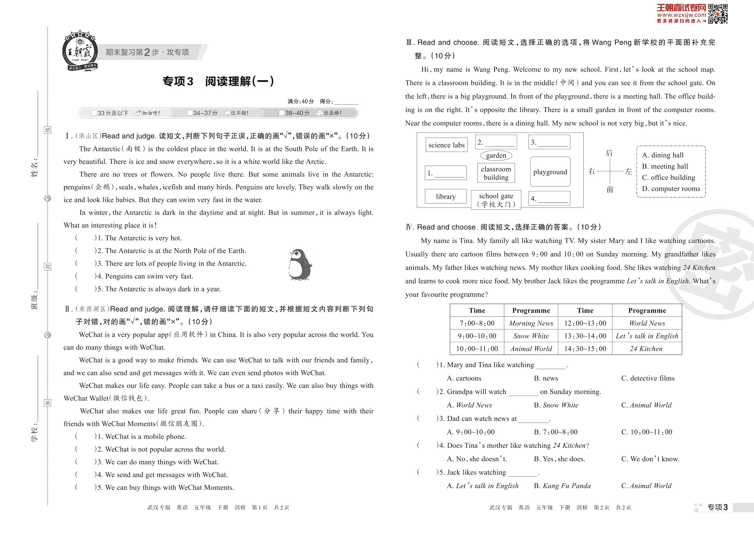 王朝霞期末专项卷——阅读理解(一)五年级下册英语(剑桥版)_R230420161418548【3】
