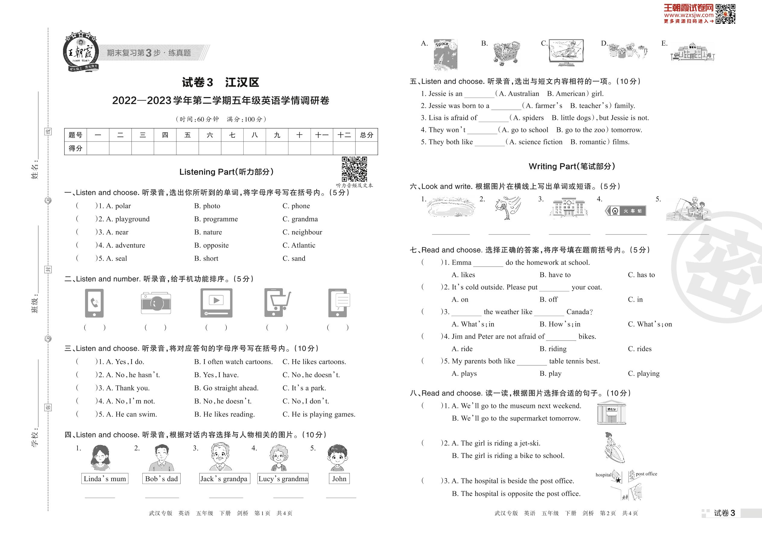 江汉区2022—2023学年第二学期五年级英语学情调研卷(剑桥版)【3】