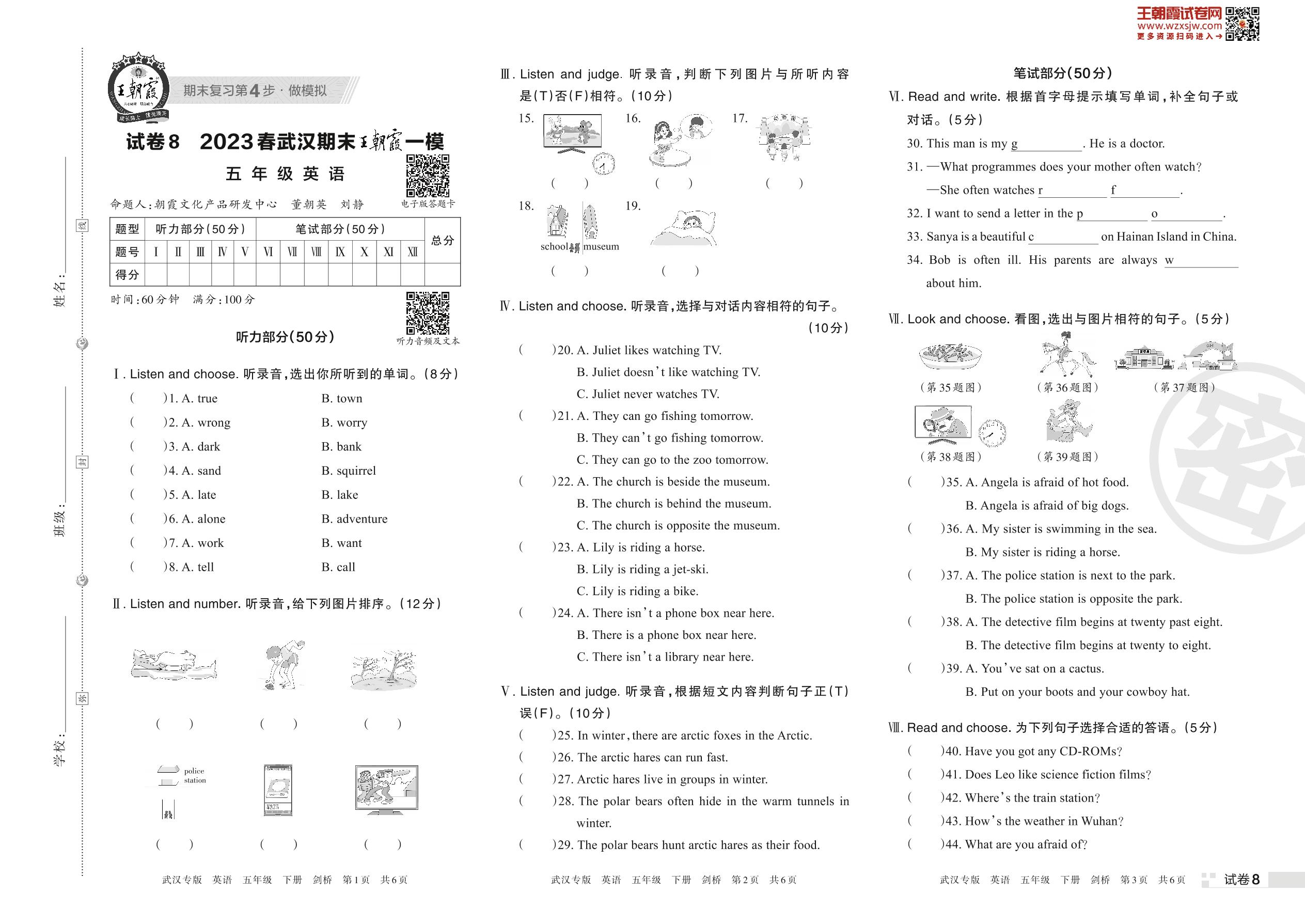 王朝霞期末模拟卷五年级下册英语(剑桥版)_R230420161419864【8】