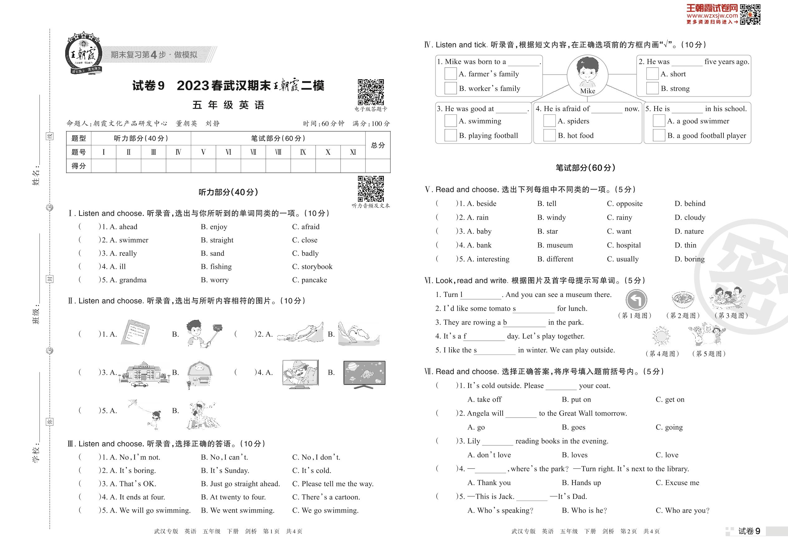 王朝霞期末模拟卷五年级下册英语(剑桥版)_R230420161420729【9】