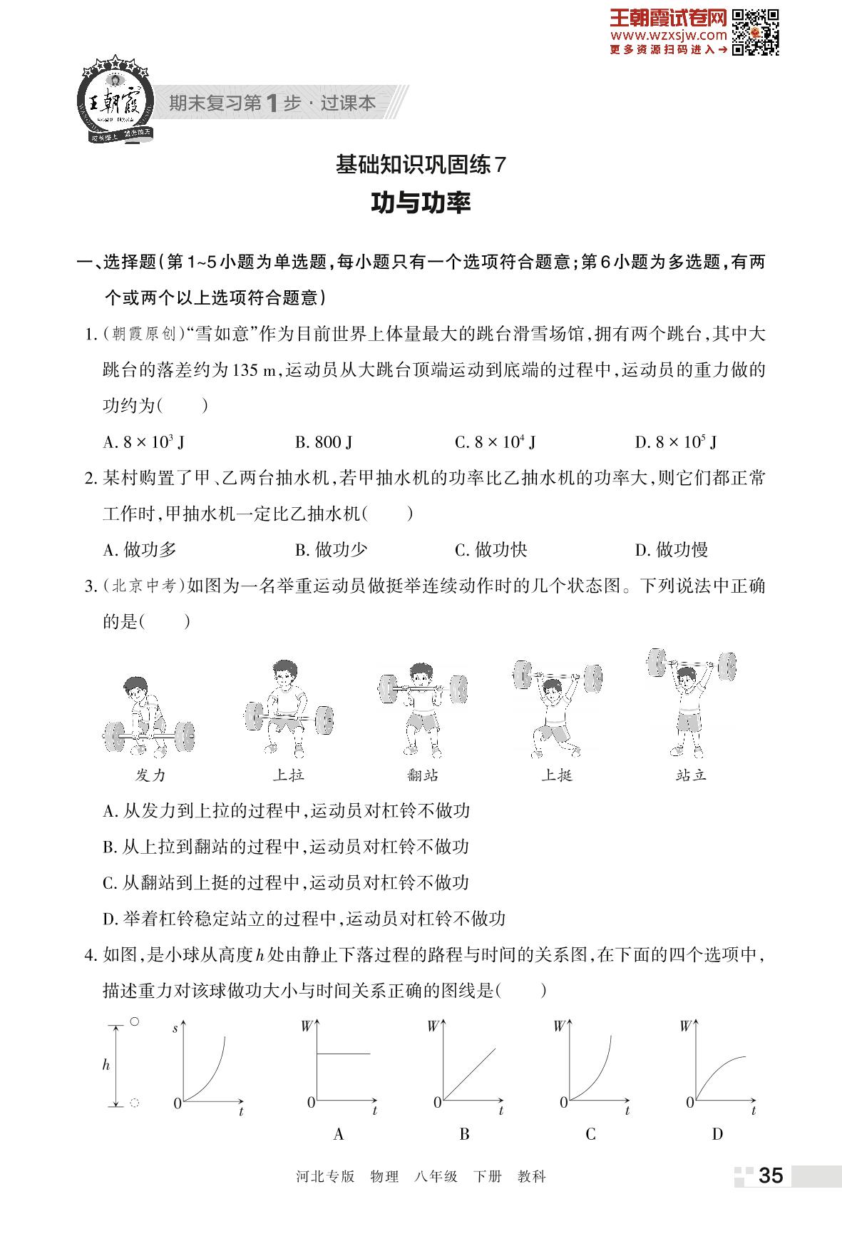 王朝霞期末过课本——基础知识巩固练7 功与功率八年级下册物理(教科版)_R230420161728232