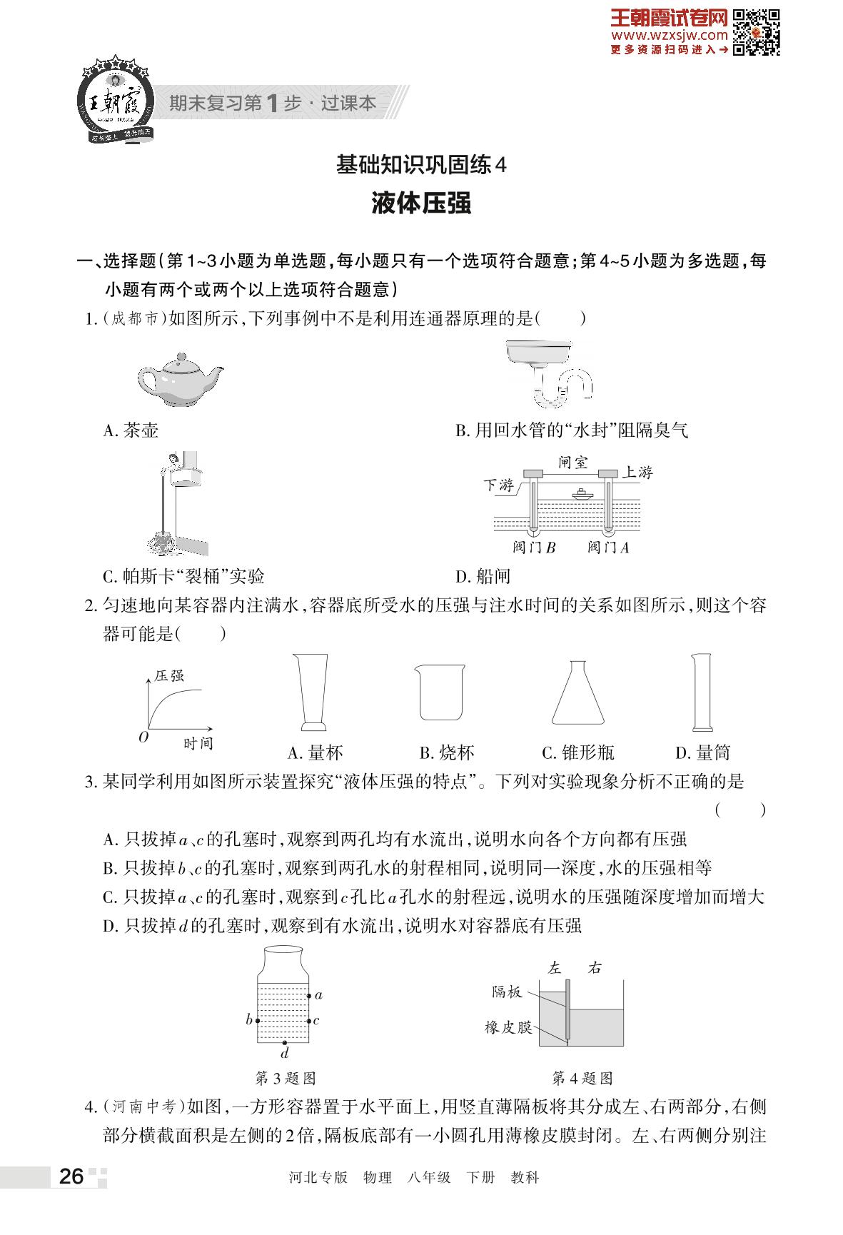 王朝霞期末过课本——基础知识巩固练4 液体压强八年级下册物理(教科版)_R230420161728143