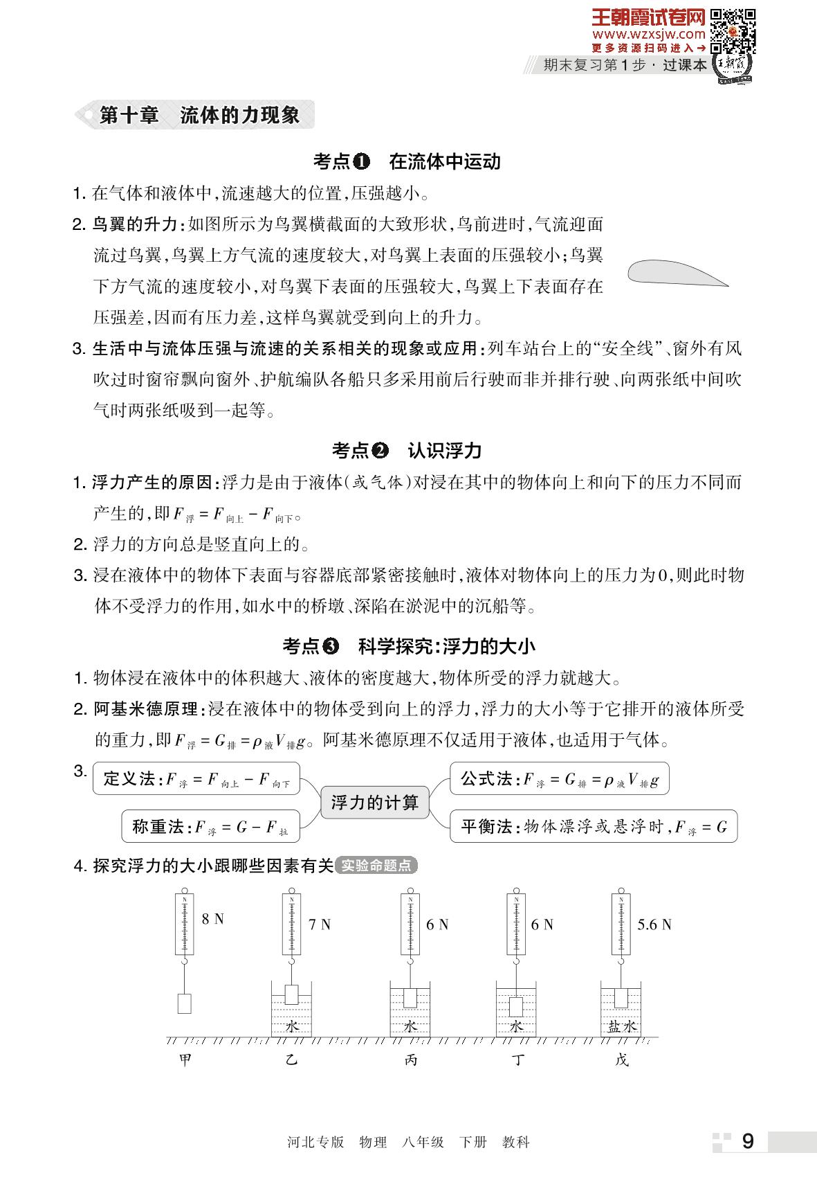 王朝霞期末知识梳理——第十章 流体的力现象八年级下册物理(教科版)