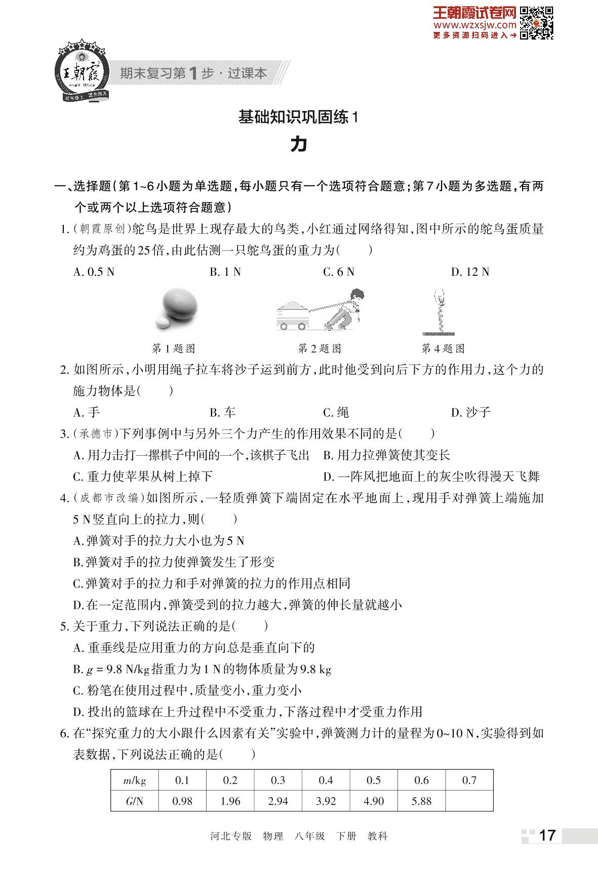 王朝霞期末过课本——基础知识巩固练1 力八年级下册物理(教科版)_R230420161729943
