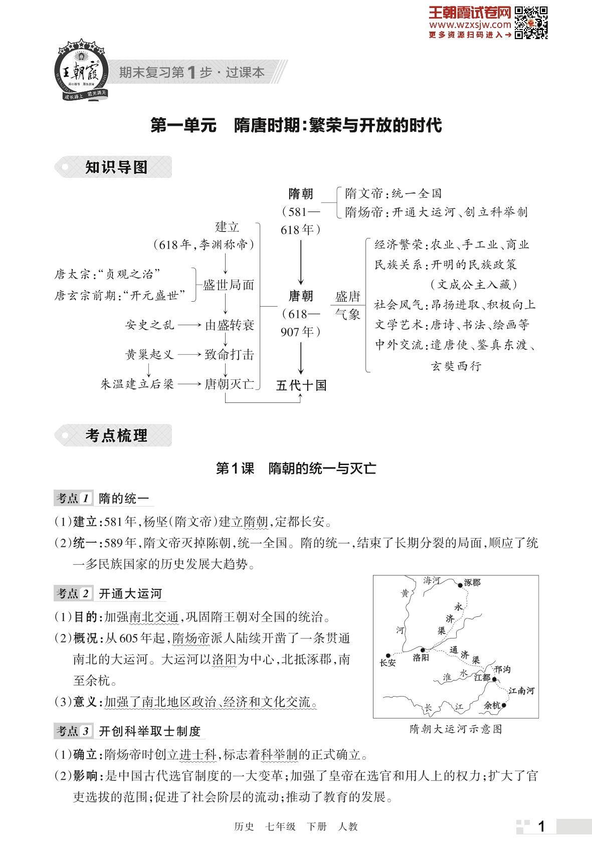 王朝霞期末知识梳理——第一单元 隋唐时代:繁荣与开放的时代七年级下册历史(人教版)
