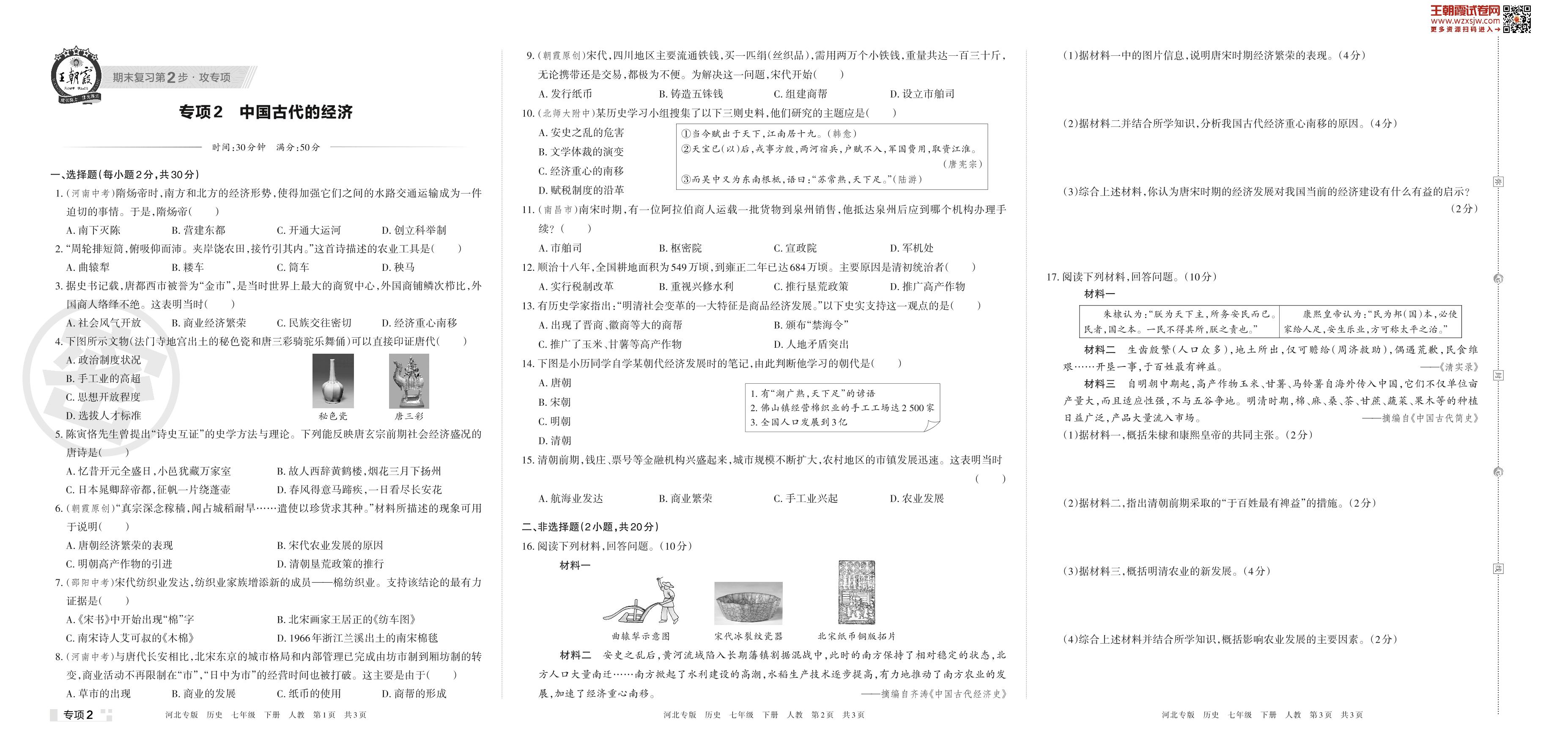 王朝霞期末专项卷——中国古代的经济七年级下册历史(人教版)_R230420162213526【2】