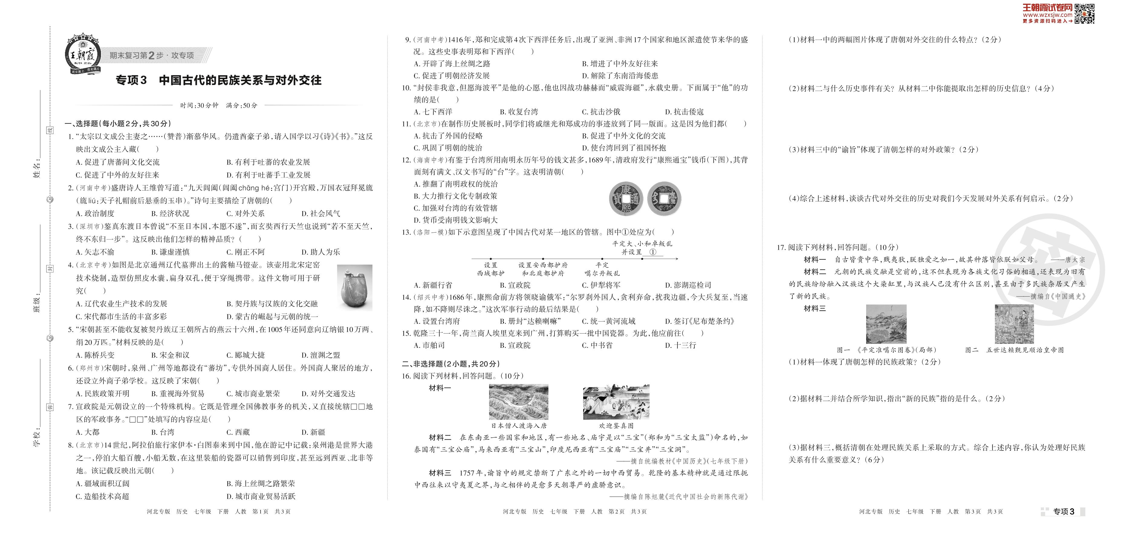 王朝霞期末专项卷——中国古代的民族关系与对外交往七年级下册历史(人教版)_R230420162213177【3】