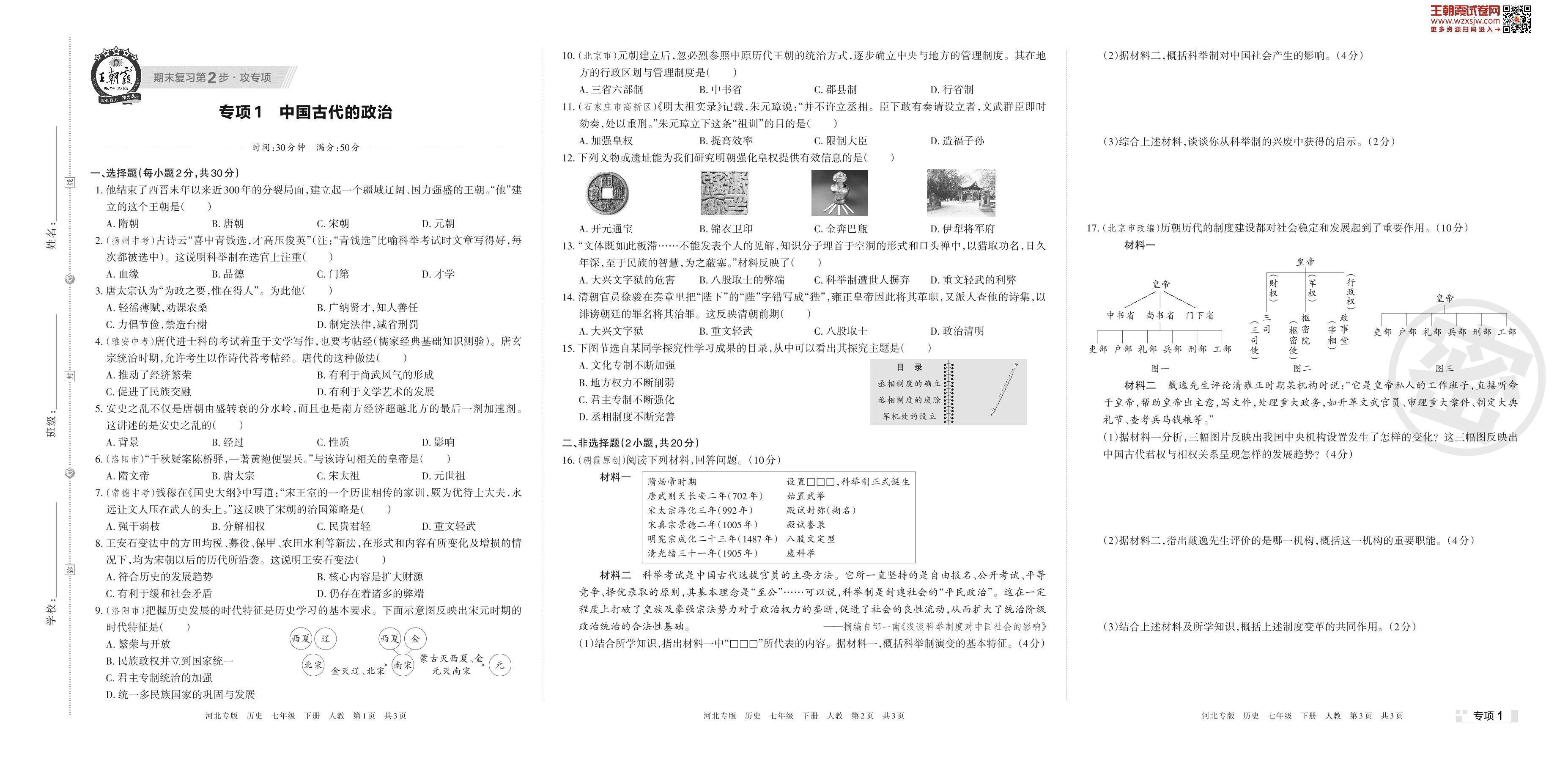 王朝霞期末专项卷——中国古代的政治七年级下册历史(人教版)_R230420162214055【1】