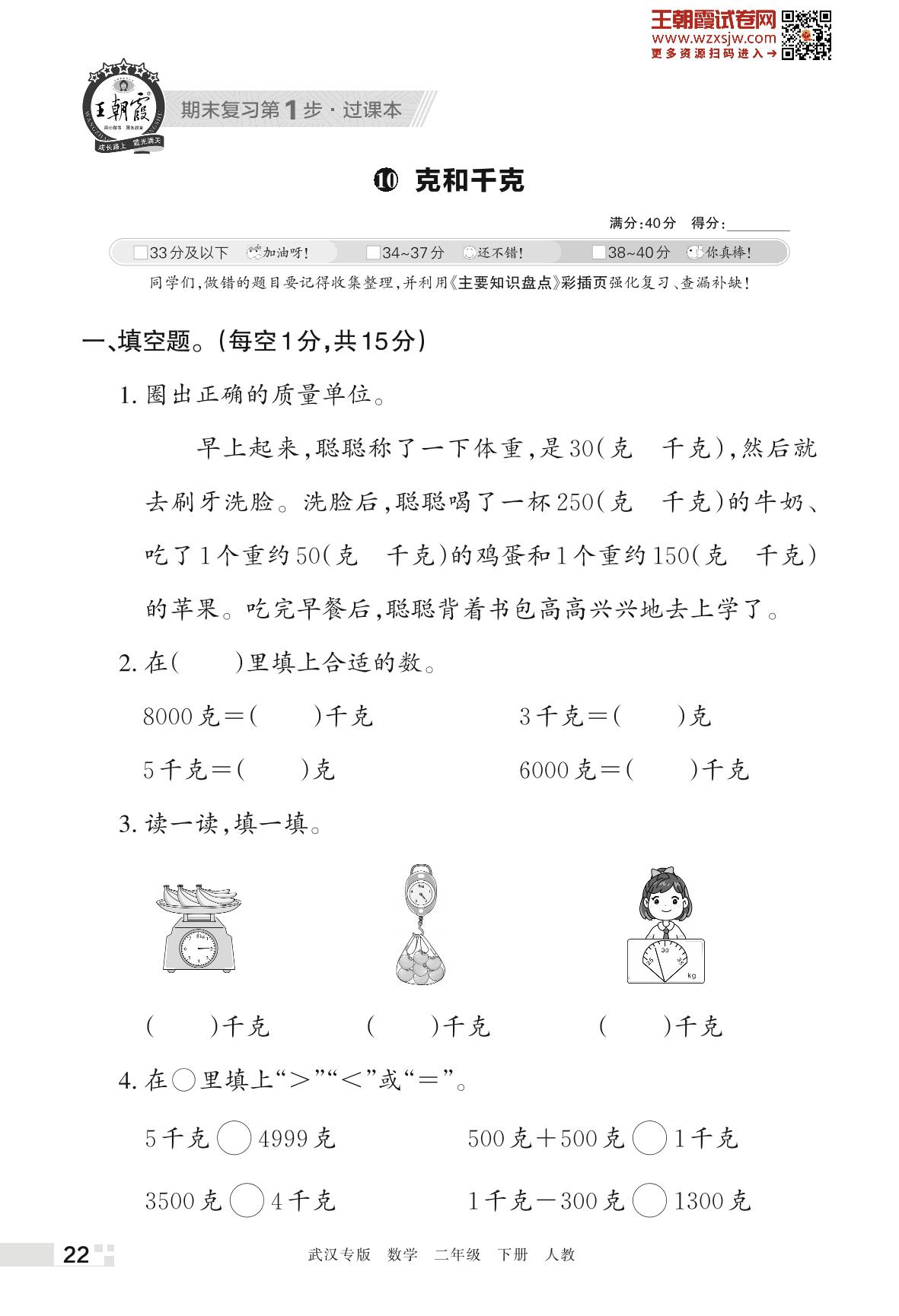 王朝霞期末过课本——10 克和千克二年级下册数学(人教版)_R230420162512495