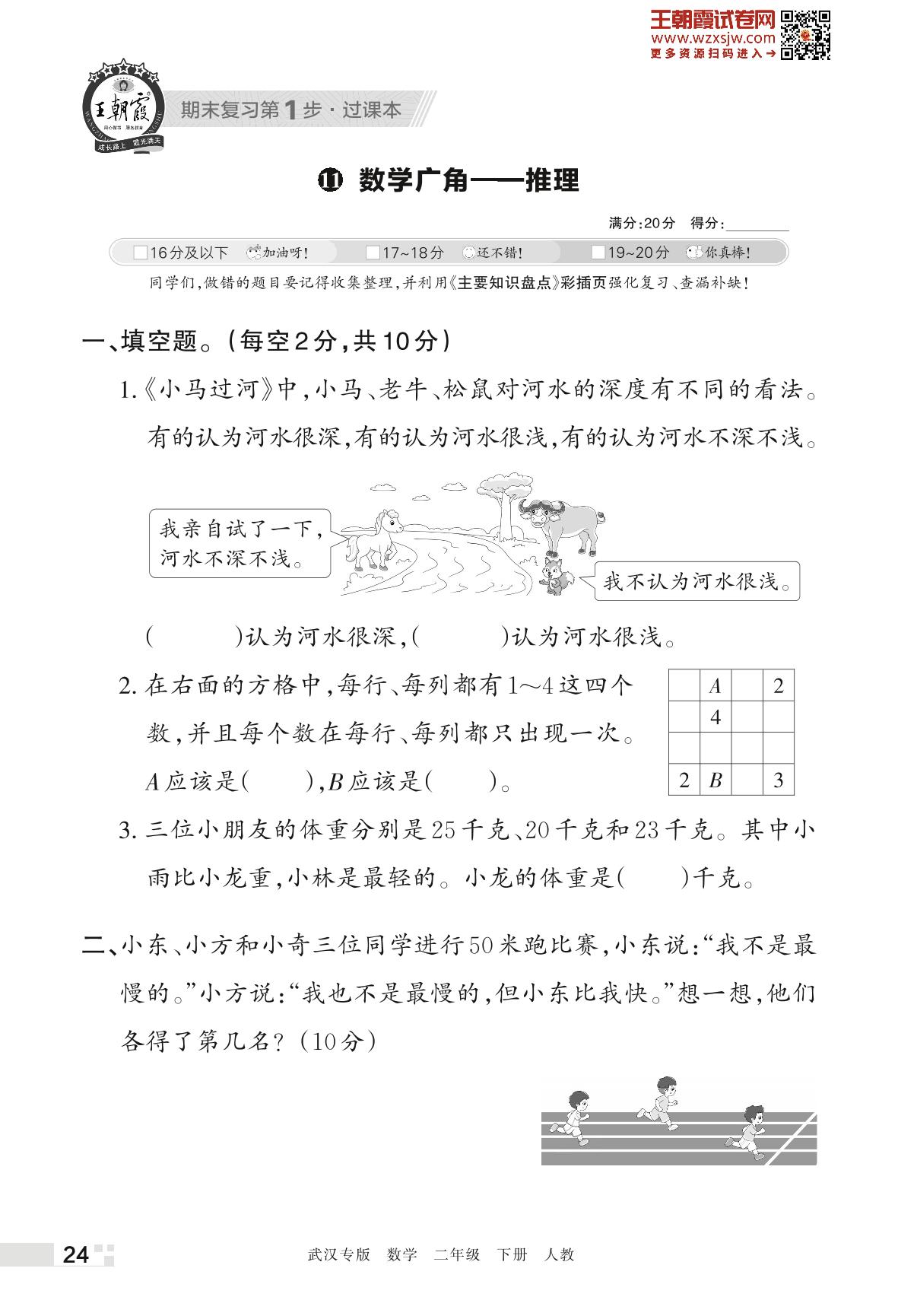 王朝霞期末过课本——11 数学广角:推理二年级下册数学(人教版)_R230420162513958