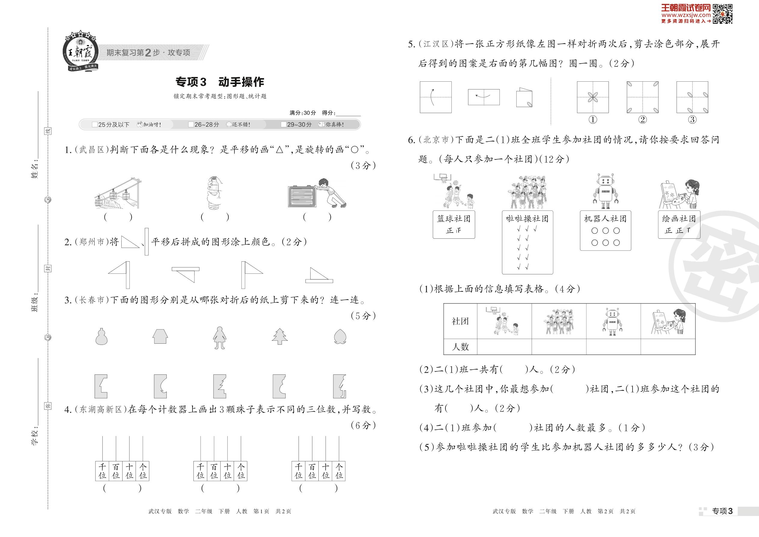 王朝霞期末专项卷——动手操作二年级下册数学(人教版)_R230420162513734【3】
