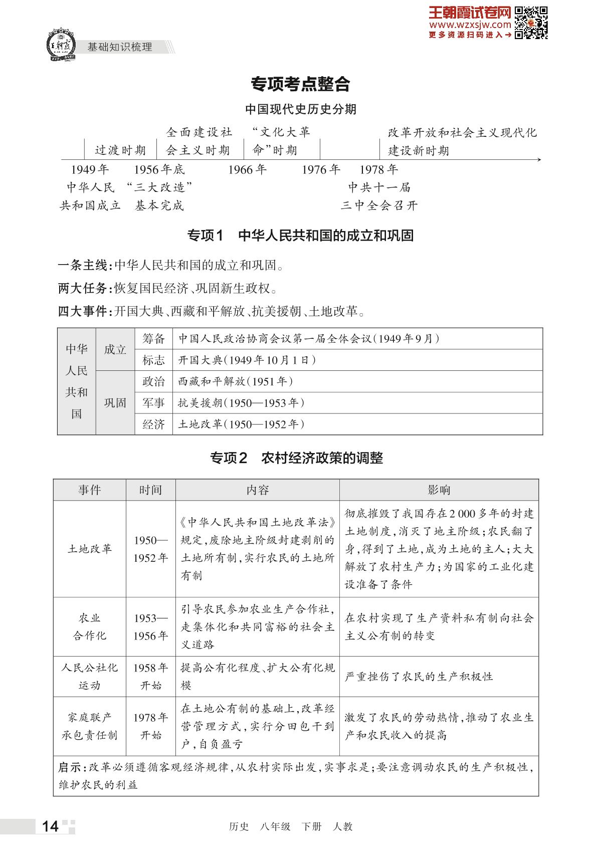 王朝霞期末知识梳理——专项考点整合八年级下册历史(人教版)