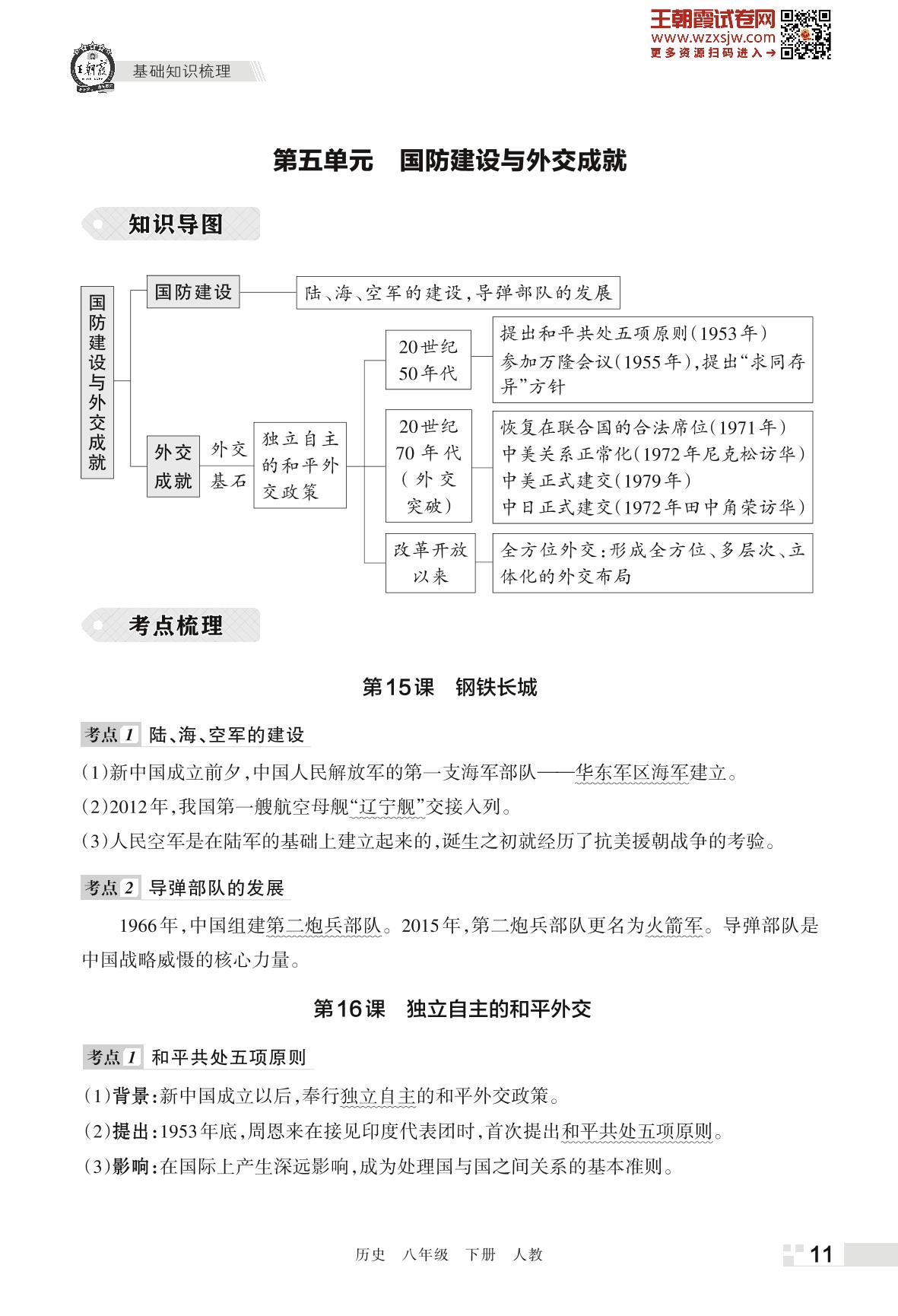 王朝霞期末知识梳理——第五单元 国防建设与外交成就八年级下册历史(人教版)