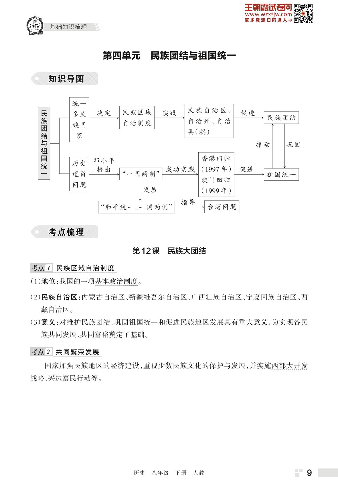 王朝霞期末知识梳理——第四单元 民族团结与祖国统一八年级下册历史(人教版)