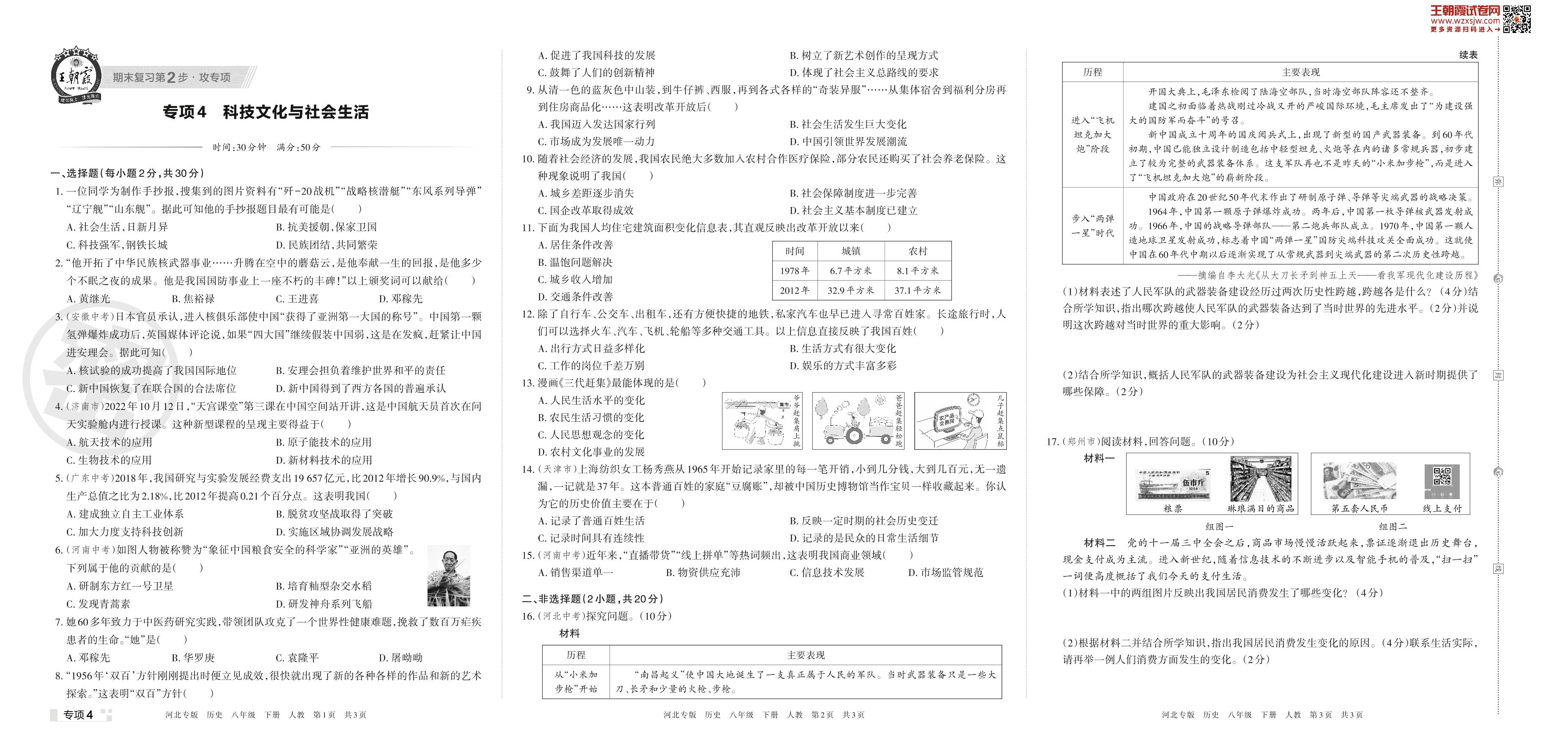 王朝霞期末专项卷——科技文化与社会生活八年级下册历史(人教版)【4】