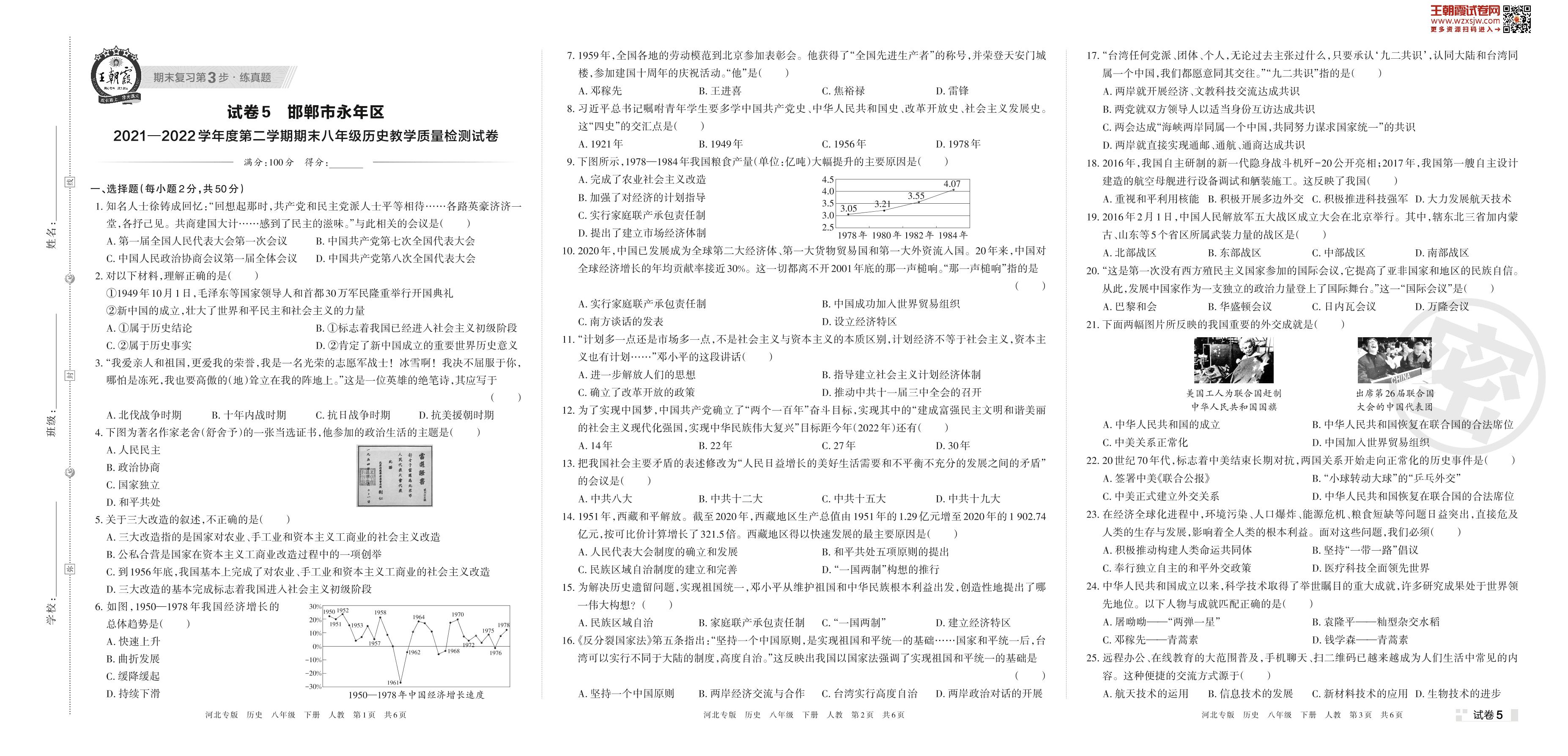邯郸市永年区2021—2022学年度第二学期期末八年级历史教学质量检测试卷(人教版)【5】