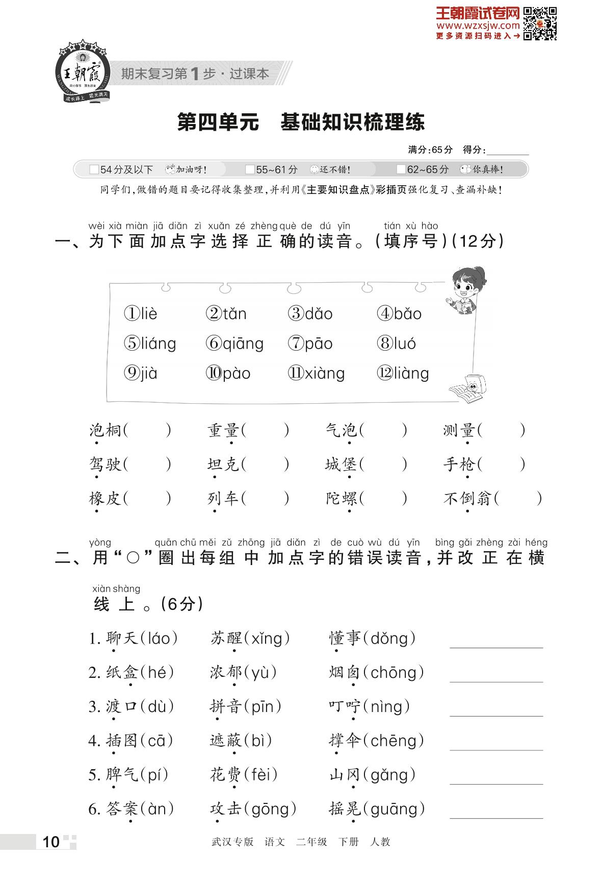 王朝霞期末过课本——第四单元 基础知识梳理练二年级下册语文(人教版)_R230420163032312