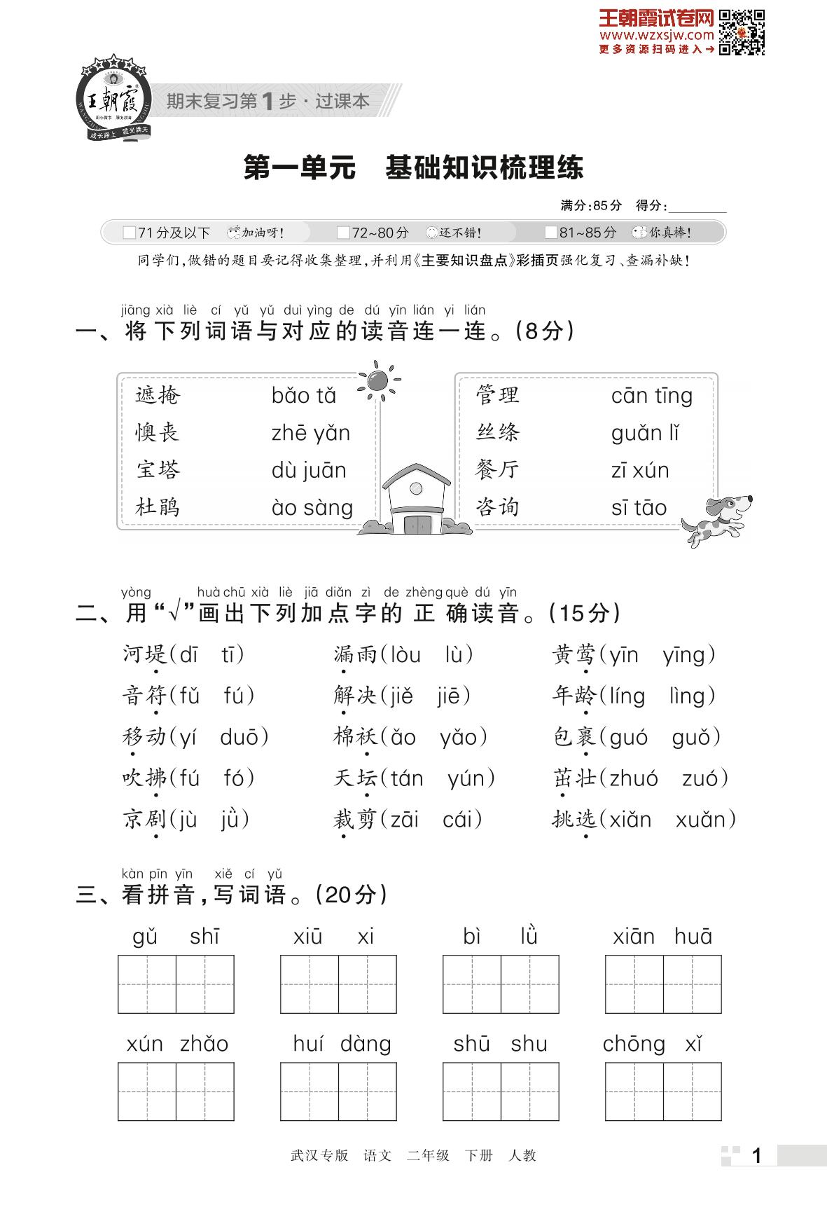 王朝霞期末过课本——第一单元 基础知识梳理练二年级下册语文(人教版)_R230420163032322