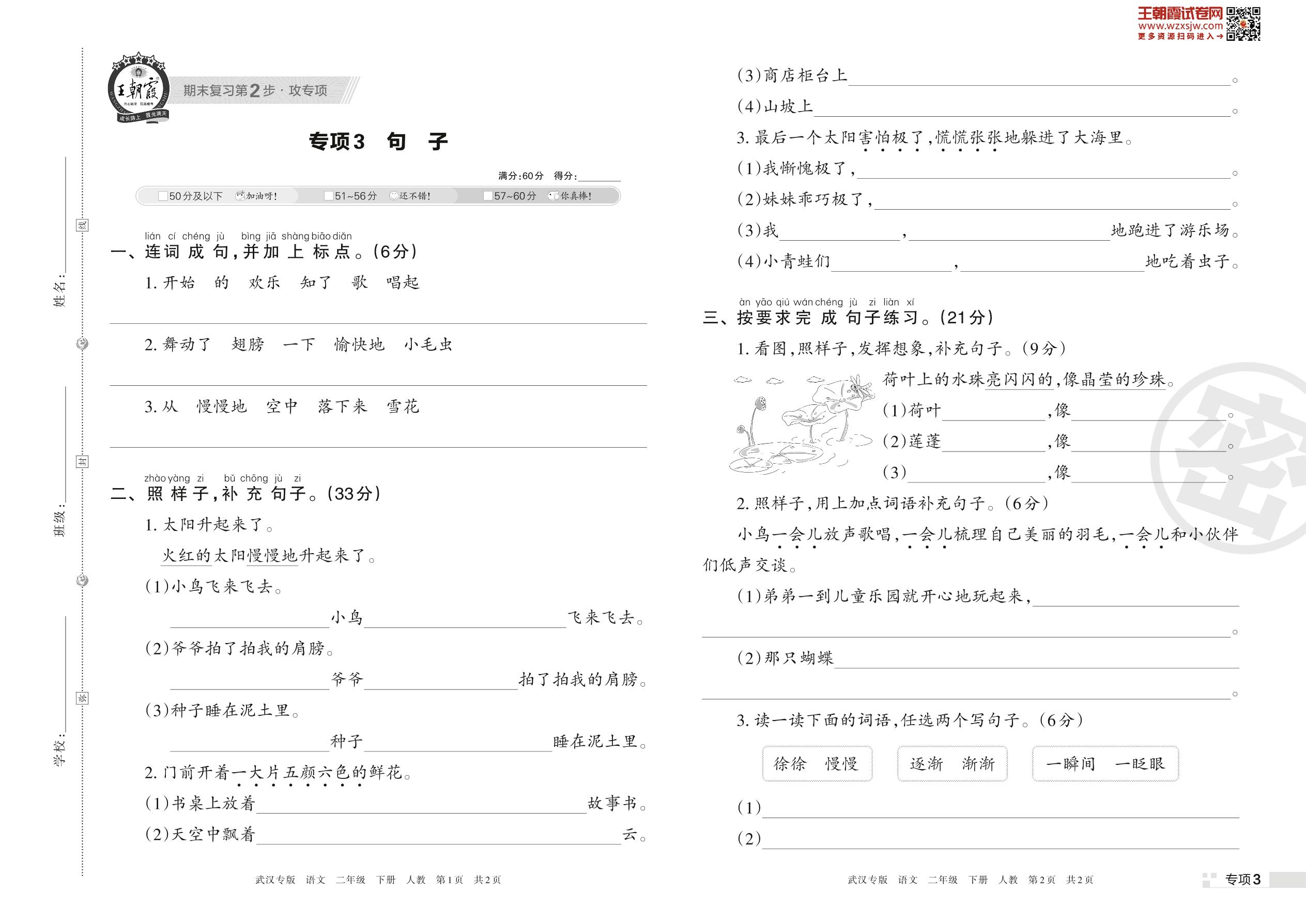 王朝霞期末专项卷——句子二年级下册语文(人教版)_R230420163033079【3】