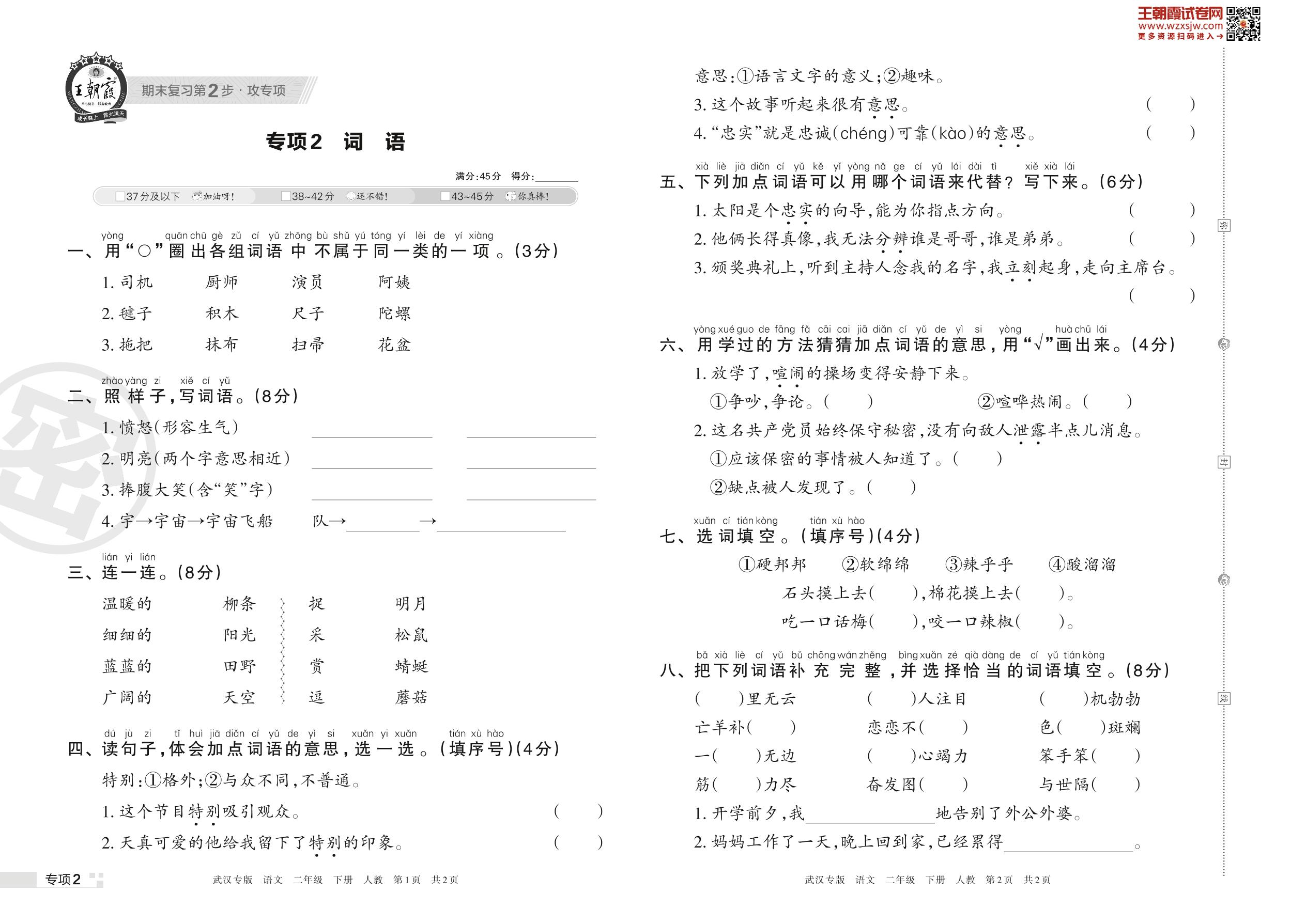 王朝霞期末专项卷——词语二年级下册语文(人教版)_R230420163033304【2】