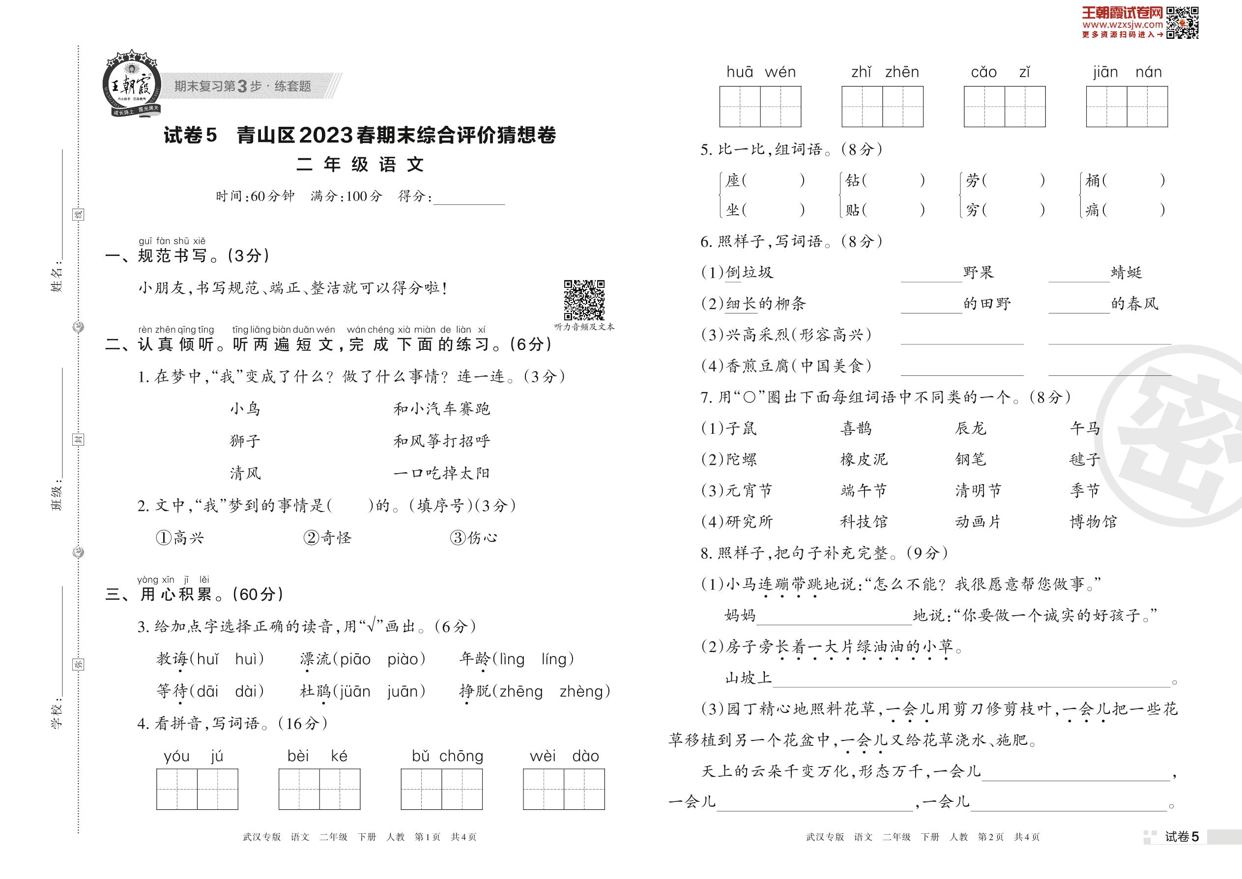 青山区2023春期末综合评价猜想卷二年级语文(人教版)【5】